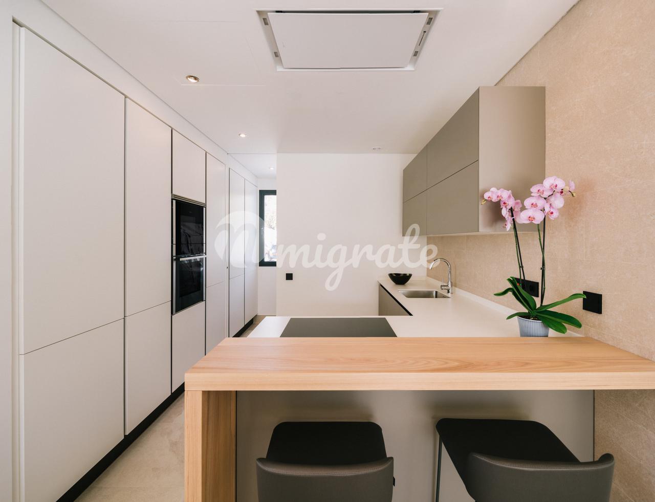 Это свойство является частью комплекса всего 9 единиц. Это угловой таунхаус с прачечной, гостевым туалетом, кухней, выходящей в гостиную с практичным баром для завтрака или неформального обеда, и гостиной-столовой, выходящей на террасу, которая имеет прямой выход в общий сад и к бассейну.