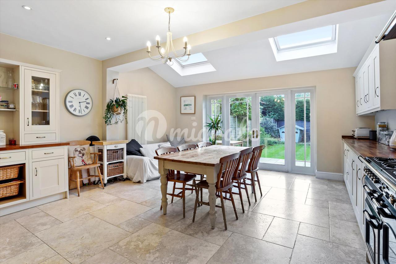 Расположенный в самом сердце центра города Уэйбридж, этот красиво оформленный отдельно стоящий старинный особняк был расширен и обновлен, сохранив при этом многие старинные черты, включая высокие потолки с наличниками и оригинальные камины.