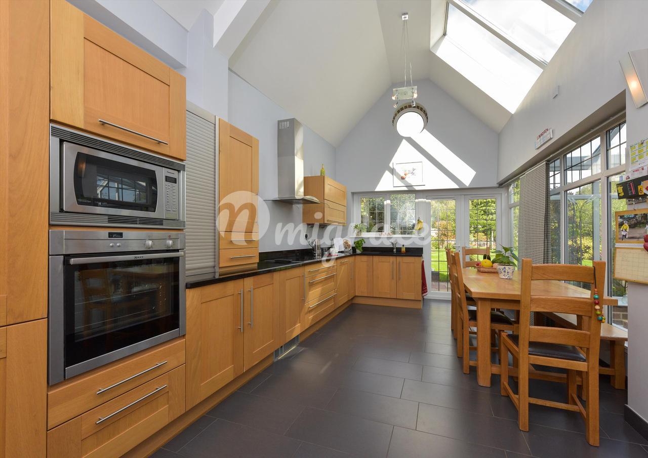 Восхитительный семейный дом предлагает хорошо спланированные и элегантно обставленные номера с прекрасными старинными чертами. Расположенная в стороне от дороги, мощеная подъездная дорога с закрытым блоком обеспечивает просторную парковку для нескольких автомобилей и имеет полезный единственный гараж. Входная дверь из цельного дерева с красивыми витражными панелями установлена в пределах цельного входного крыльца и имеет красивые оригинальные витражные окна с боковыми панелями. Входная дверь открывается в просторную прихожую с деревянным полом и потолочными балками. Лестница поднимается на площадку первого этажа, а двери расходятся в главные приемные. Имеется вместительная гостевая гардеробная. Гостиная находится в передней части дома, и внимание сразу же привлекает великолепный эркер, из которого открывается прекрасный вид на фасад и много света в комнате. Мраморный камин с чугунной окантовкой и открытым огнем завершает это пространство. Прекрасная формальная столовая светлая и светлая, с французскими дверями, ведущими в большую оранжерею, обеспечивающую много света и вид на сады. Здесь есть потрясающий открытый камин с декоративным чугунным обрамлением и витрина со стеклянным фасадом. Семейный номер представляет собой прекрасный уютный доступ из приемной, зимнего сада и кухни. Благодаря свету из зимнего сада это пространство также может превратиться в прекрасную комнату для хобби, студию художника или читальный зал, в зависимости от необходимости. Большая, двойная высота и безукоризненно оборудованная кухня/зал для завтрака находится в задней части здания и предлагает широкий выбор настенных и напольных устройств с полированными гранитными рабочими поверхностями, обеспечивающими много места для работы начинающего шеф-повара. Есть большой световой люк наверху и иллюминатор над французскими дверями до конца фронтона, обеспечивающие много света и прекрасный вид на сады. Существует хороший выбор встроенной бытовой техники, включая индукционную плиту с пятью конфорками De Dietrich, посудомоечную машину Miele, духовку Neff, микроволновую печь Panasonic, холодильник/морозильник Samsung в американском стиле с дозатором льда/холодной воды и стиральную машину Siemens. Большое подсобное помещение обеспечивает достаточно места для хранения и дверь в боковой магазин. Это пространство обеспечивает доступ к передней части дома, гаражу и гардеробной садовника. В прекрасный зимний сад с полностью стеклянной крышей можно попасть из гостиной и столовой. Это сказочное многоцелевое пространство создает ощущение сада в помещении. Из приемного зала лестница поднимается на первый этаж. Над лестницей есть еще один прекрасный витраж, и сюда можно попасть в четыре из пяти спален вместе с семейной ванной комнатой. Главная спальня расположена в передней части дома и имеет эркер, выходящий на переднюю сторону. Имеется хорошо оборудованная ванная комната с душем. Вторая спальня также расположена в передней части дома и имеет большой ряд шкафов и прекрасный эркер, обеспечивающий достаточное количество естественного света. В третьей спальне также есть большое количество шкафов и восхитительный вид на сады на заднем дворе. Семейная ванная комната находится рядом с третьей спальней и очень хорошо оснащена прекрасной двойной душевой кабин