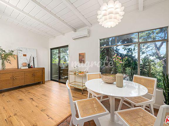 Этот очаровательный современный домик на дереве середины века расположен в самом сердце Голливуд- Хилс. Он скромно расположен на частной подъездной дорожке, окруженной великолепными соснами, цитрусовыми и лавандой. Войдя в парадные ворота, вы будете приятно удивлены просторным крыльцом, выложенным кирпичом. Это открытое пространство идеально подходит для тихого утреннего кофе под сенью зрелых деревьев или для больших посиделок с друзьями, любуясь яркими огнями ночного Голливуда. В доме есть 2 спальни и 2 ванные комнаты. Великолепные деревянные полы, исключительный камин, облицованный камнем, искусная оригинальная плитка и потрясающее новое освещение — все это создает эклектичную и теплую атмосферу. В главной спальне есть собственная терраса.