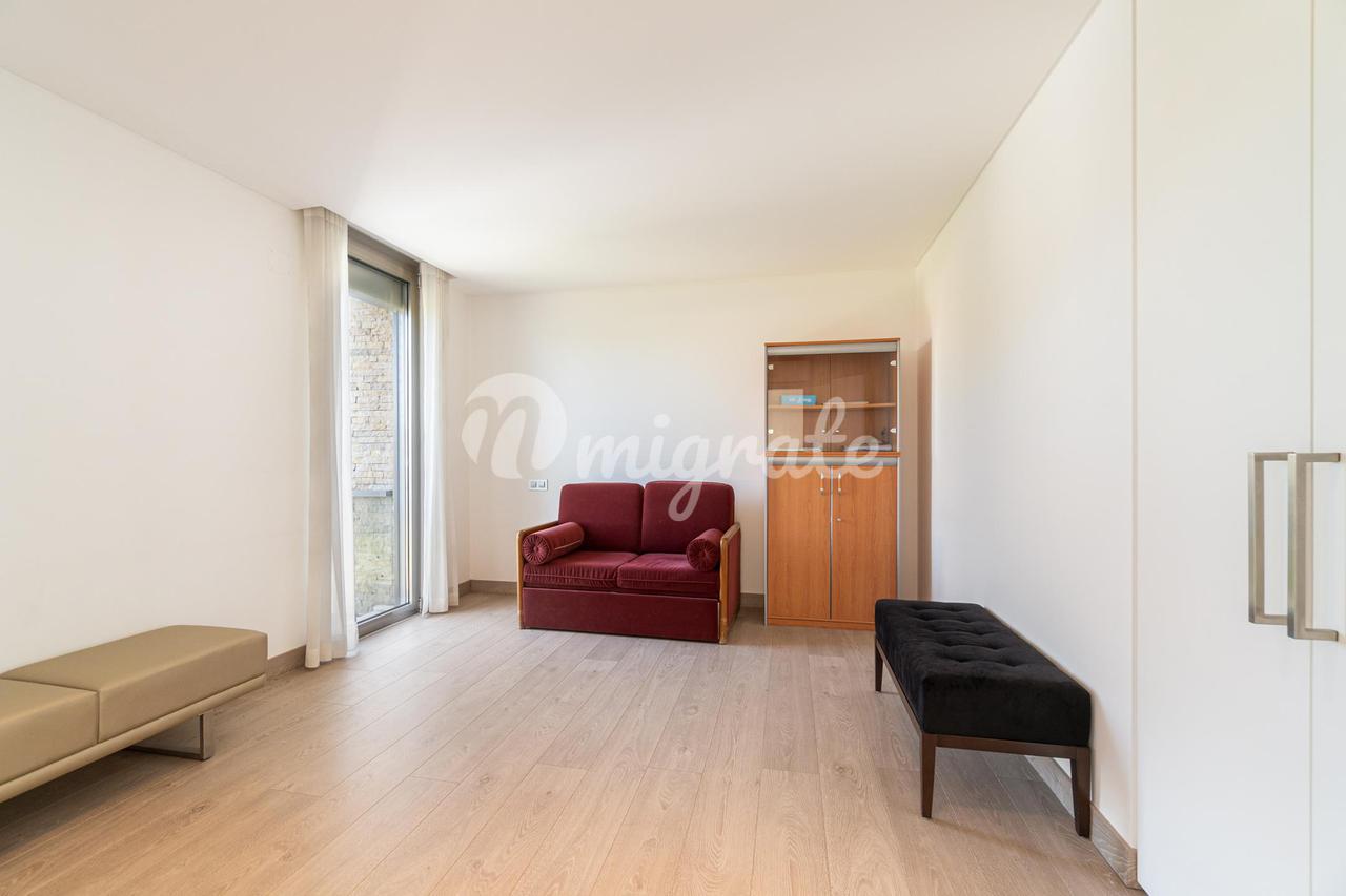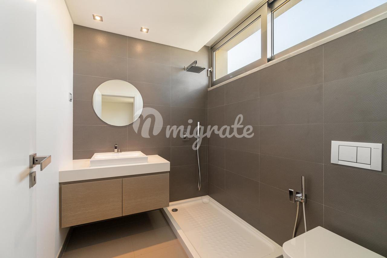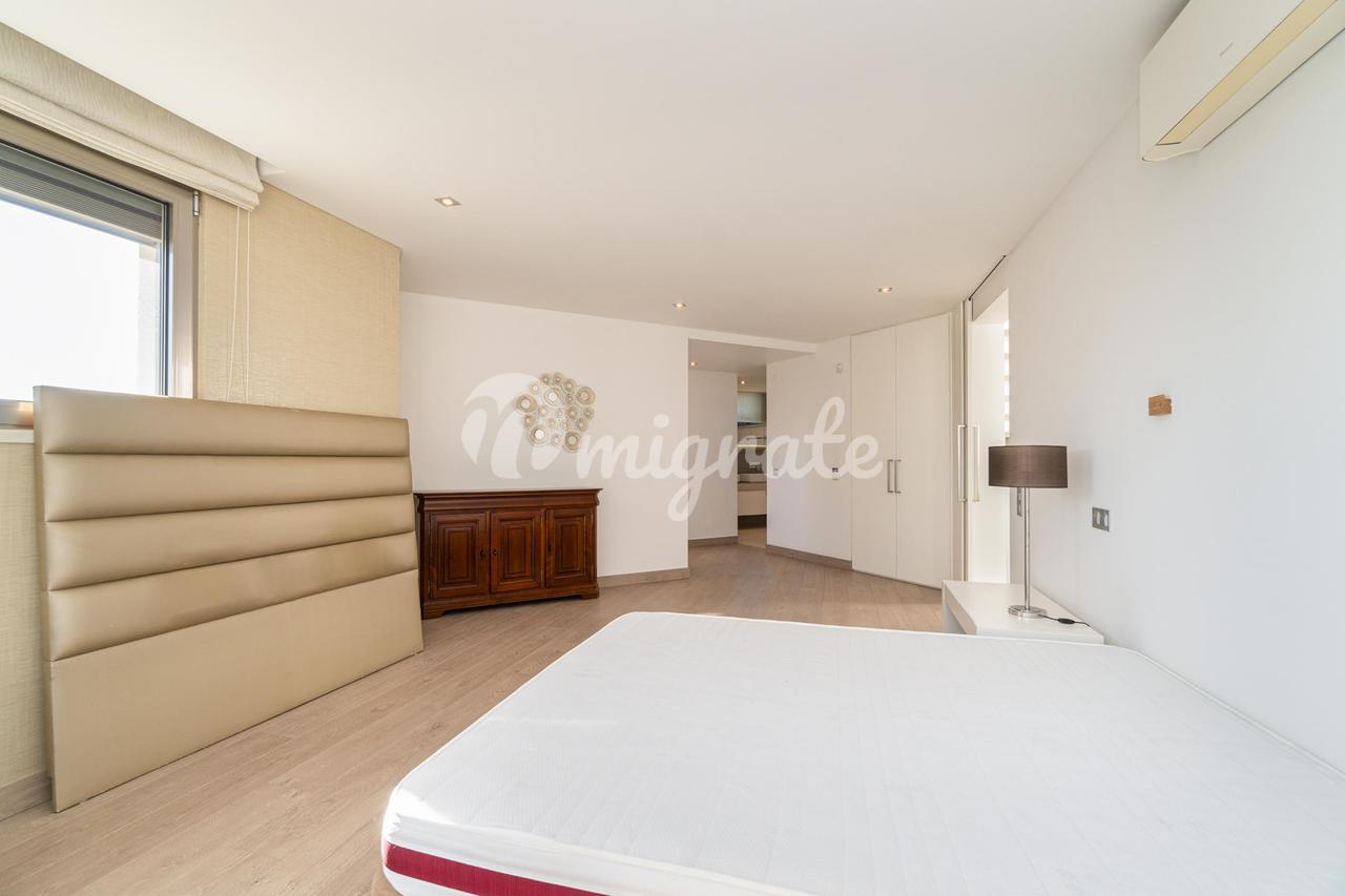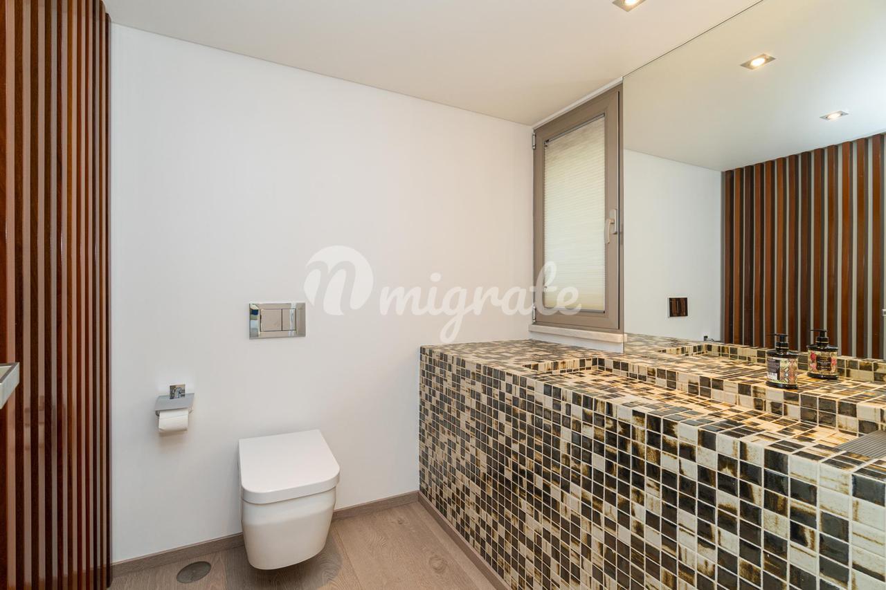 На первом этаже находится главная спальня с ванной комнатой и гардеробной, а также еще две спальни. На верхнем этаже есть просторная терраса с тренажерным залом и видом на реку Тежу.
