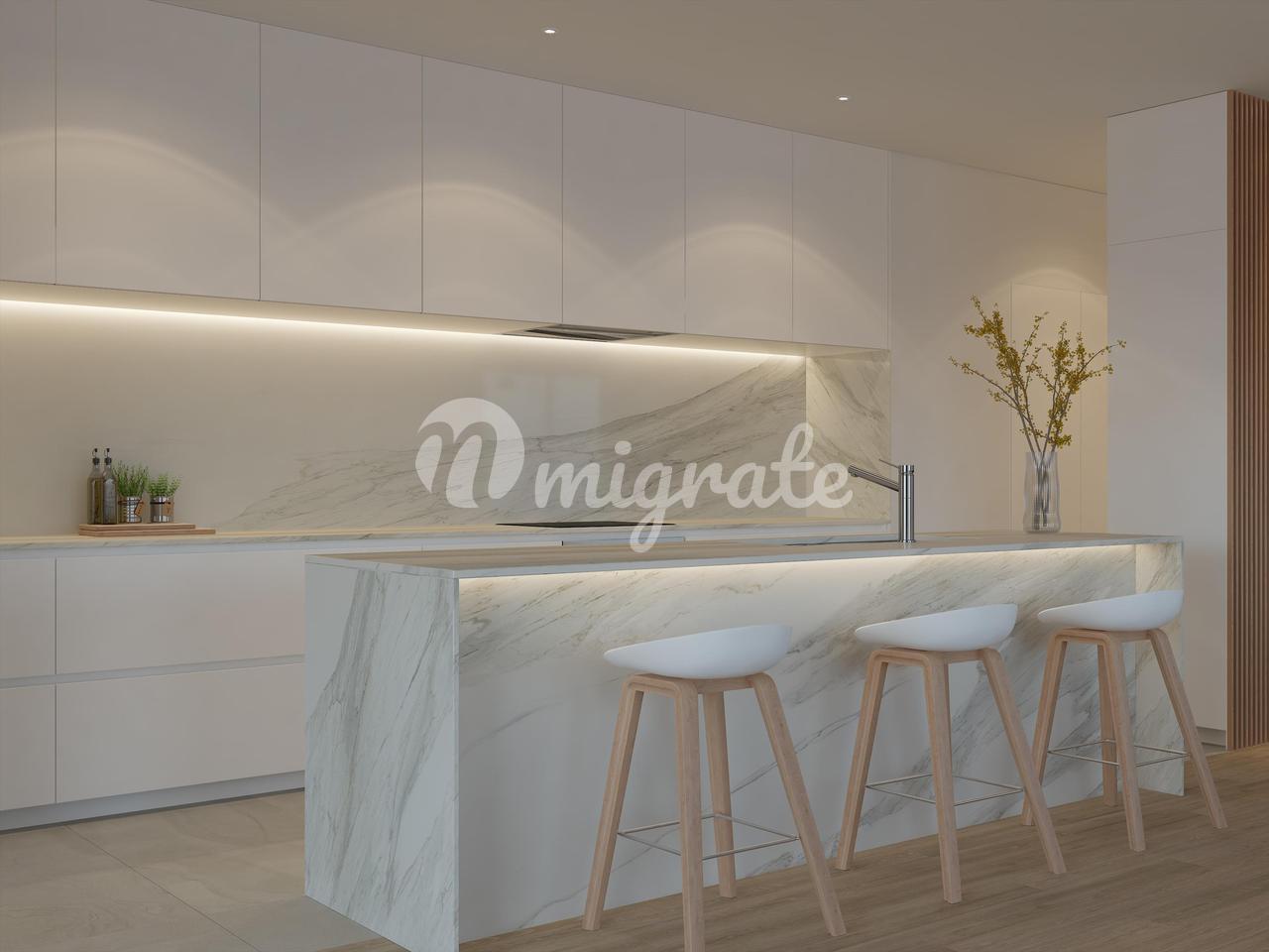 Эти апартаменты площадью 123 кв.м состоят из гостиной, кухни в американском стиле, двух спален с собственными ванными комнатами и третьей спальни с ванной комнатой. Есть также два балкона, выходящих на южную сторону, два гаражных места для электромобилей и кладовая. Квартира должна быть сдана в эксплуатацию в 3 квартале 2023 года,