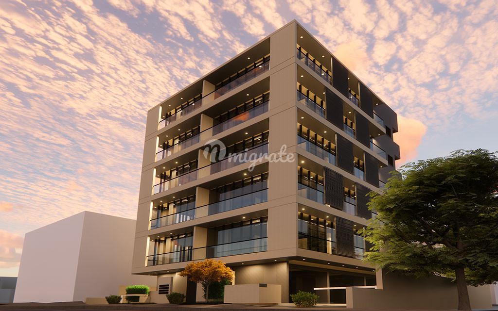 Новый проект, состоящий из магазинов и офисов, расположенных на улице Грива Дигени в Лимассоле. Здание с цокольным этажом и подземными парковочными местами.