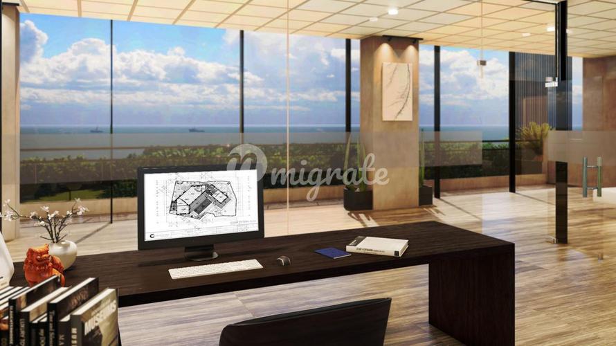Офисное помещение класса А с открытой планировкой. Площадь офисных помещений: 136-144 кв. м. Из помещения открываются виды на панораму Лимасола и море. Офис оснащен верандами, террасой с садом на крыш