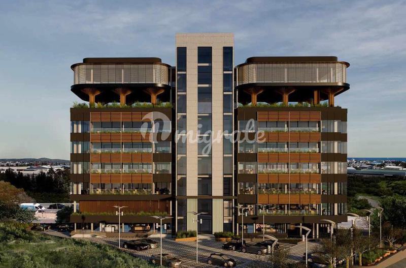 Современное 16-этажное коммерческое здание с двухуровневой подземной парковкой расположено недалеко от центра города, в 100 м от моря; удобный выезд на шоссе. Из окон открываются панорамные виды на мо