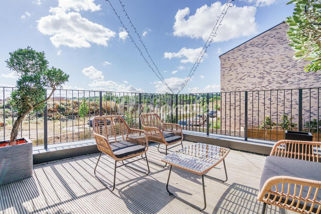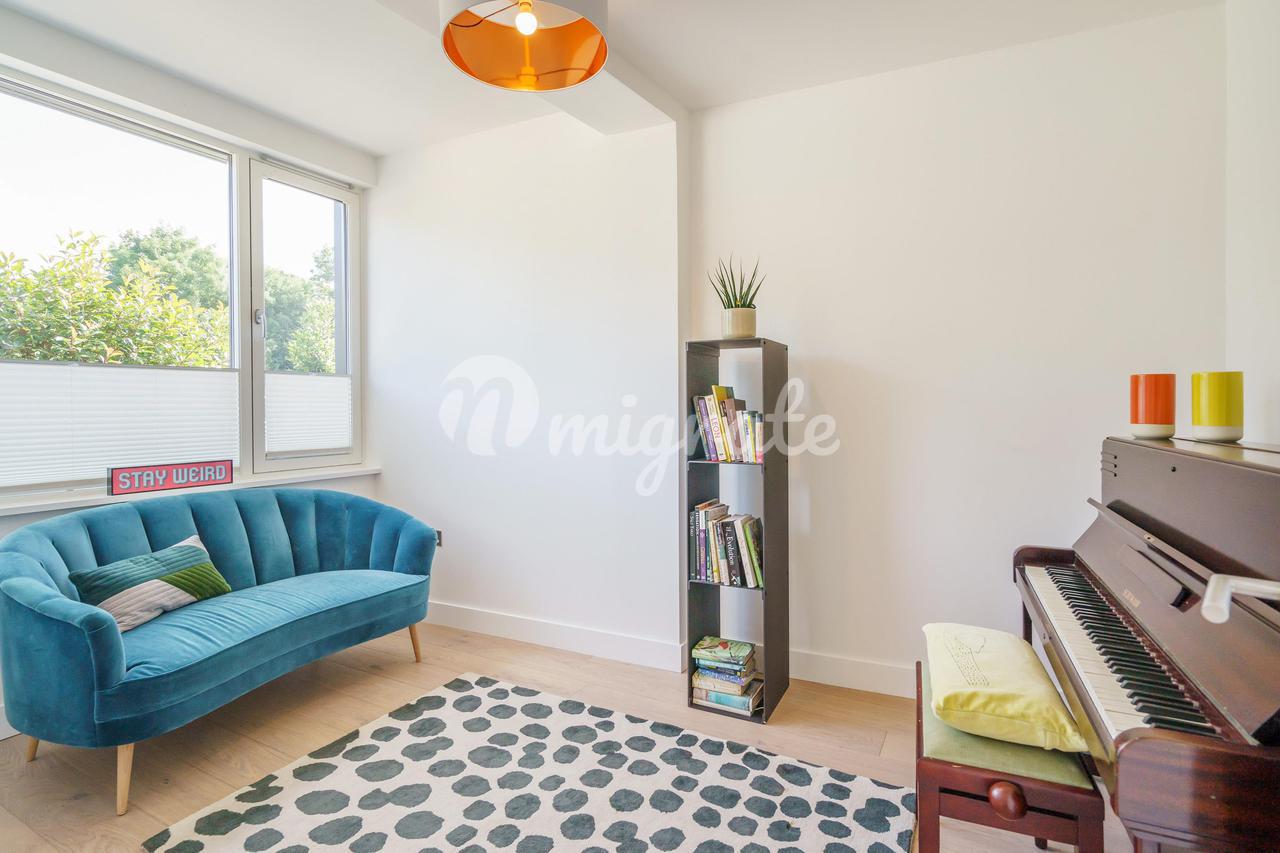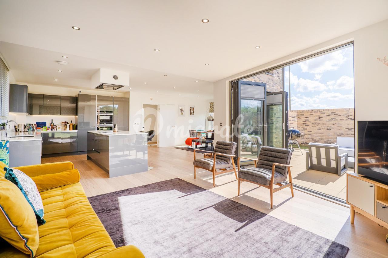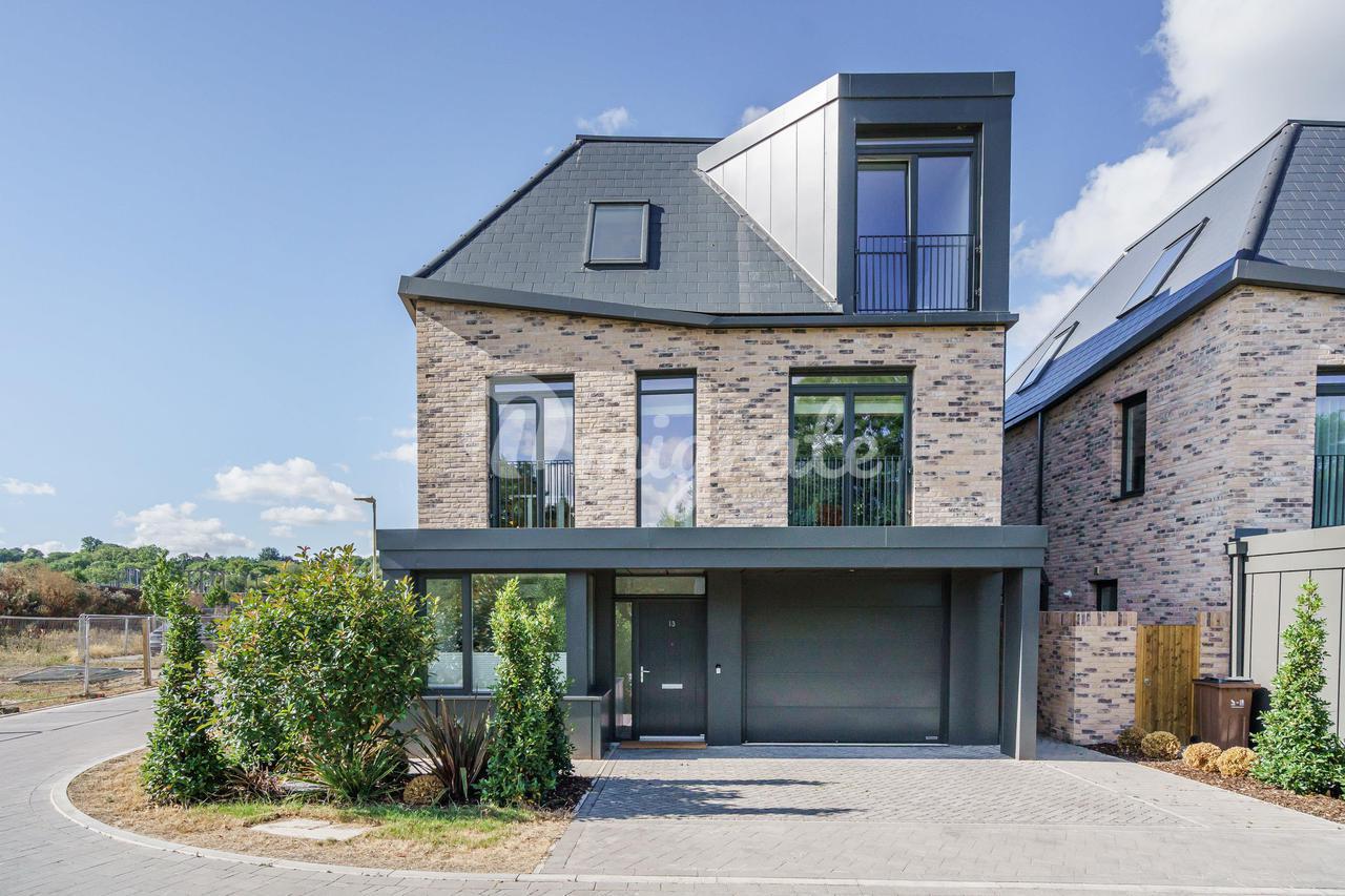 Просторный и красиво оформленный, отмеченный наградами современный отдельно стоящий дом с энергоэффективными характеристиками, расположенный на просторном угловом участке с ландшафтными садами спереди и сзади.
