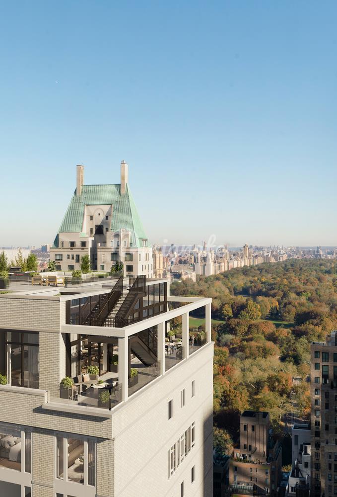 Эта светлая резиденция площадью 698 квадратных футов с одной спальней и одной ванной комнатой, спроектированная Томасом Юул-Хансеном, отличается концепцией открытой гостиной с окнами от пола до потолка, из которых открывается потрясающий вид на Центральный парк и горизонт Манхэттена.