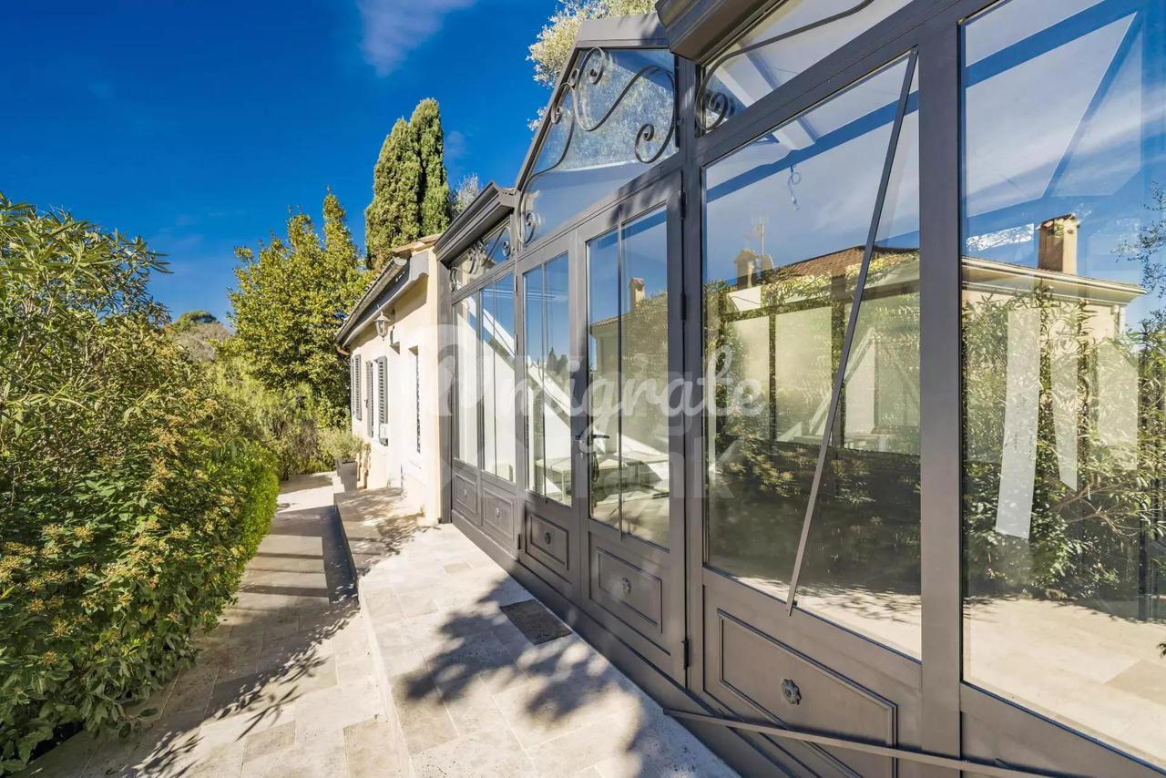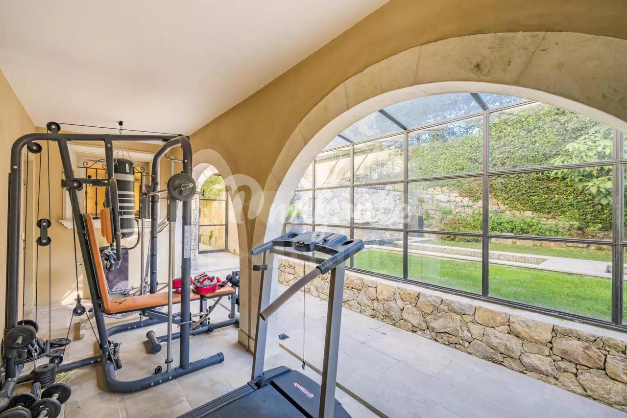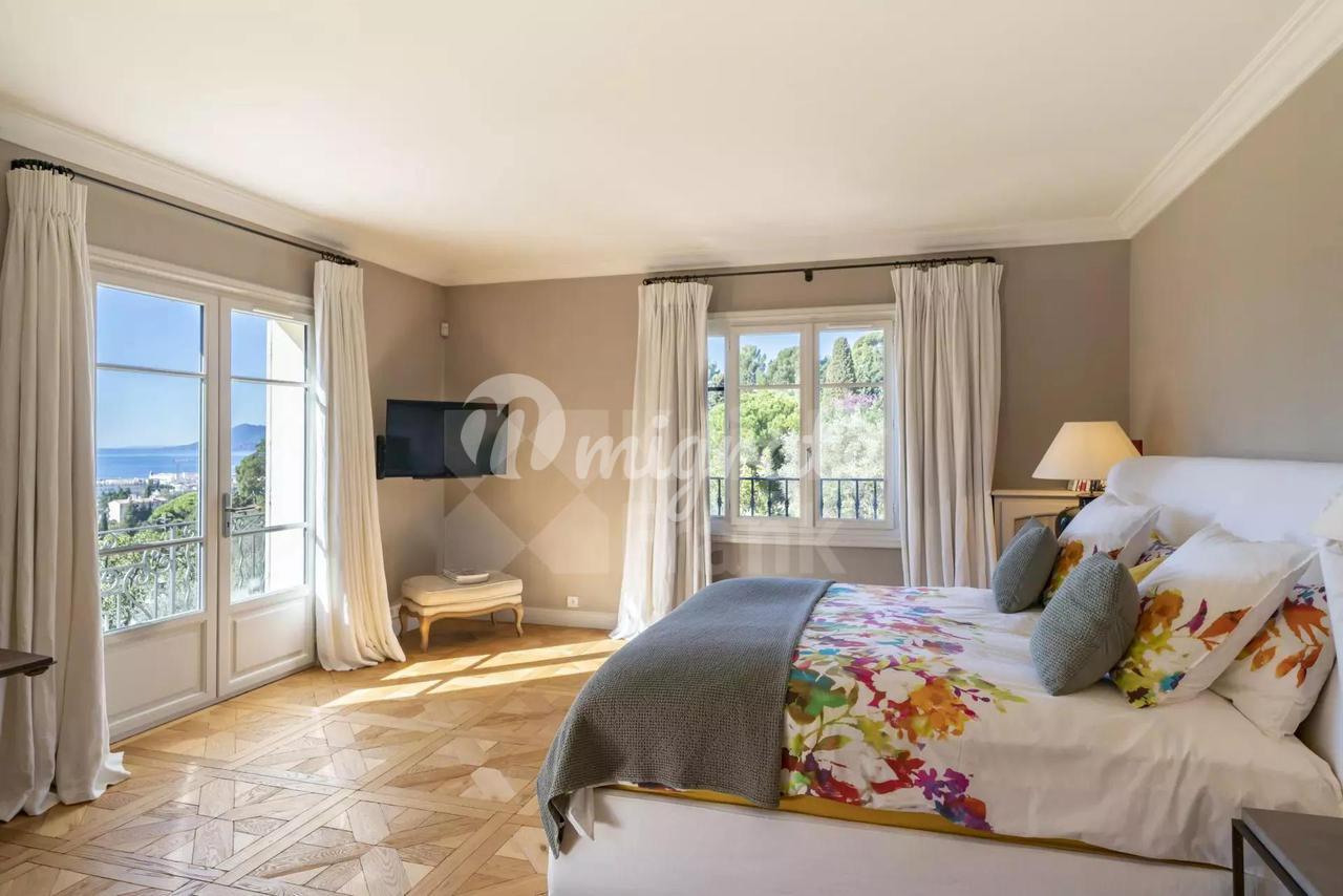Великолепный особняк в тосканском стиле, открывающий вид на море и горы, расположен в Каннах, в нижней части холмистого района Калифорния. Особняк находится на земельном участке площадью 3500 кв. м, засаженном оливковыми деревьями и кипарисами. Такой средиземноморский сад в стиле дзен, в совокупности с захватывающим видом на море и горный массив Эстерель, создает очень умиротворяющую атмосферу.
