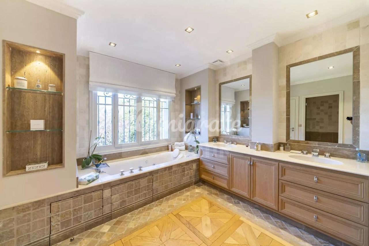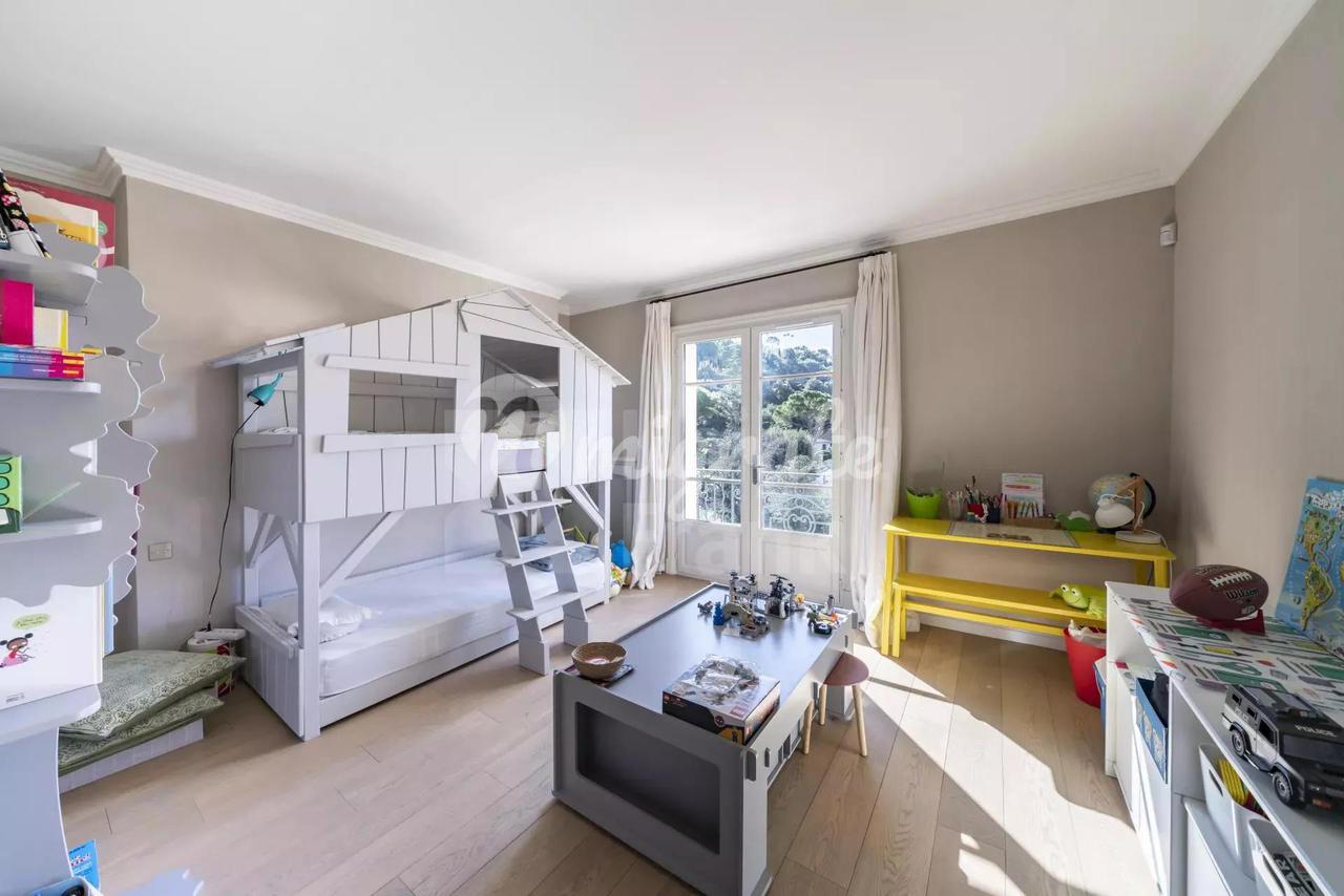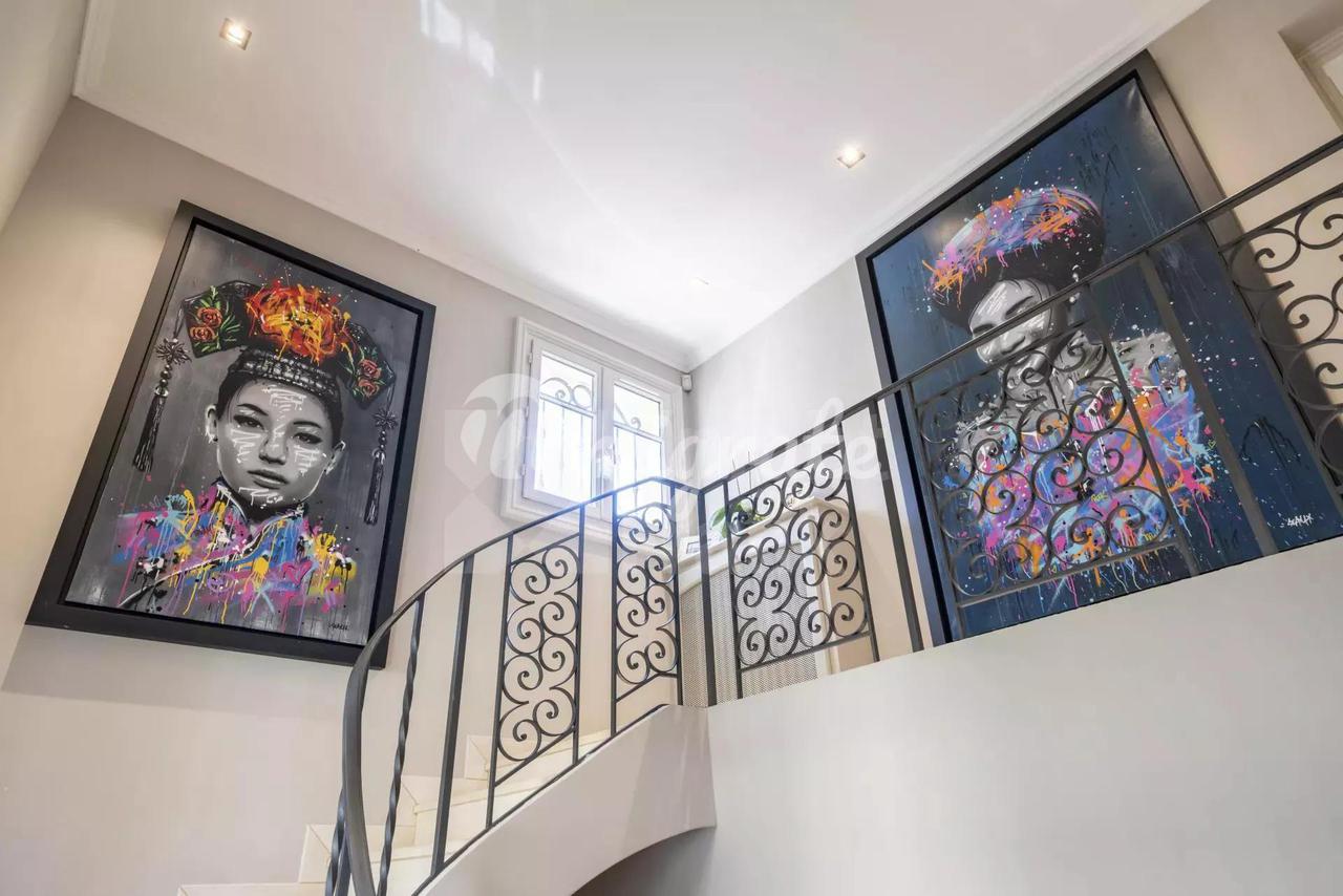 Великолепный особняк в тосканском стиле, открывающий вид на море и горы, расположен в Каннах, в нижней части холмистого района Калифорния. Особняк находится на земельном участке площадью 3500 кв. м, засаженном оливковыми деревьями и кипарисами. Такой средиземноморский сад в стиле дзен, в совокупности с захватывающим видом на море и горный массив Эстерель, создает очень умиротворяющую атмосферу.