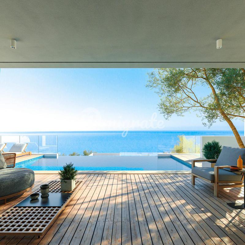 Площадь: 223–342 кв. м. Количество спален: 3-6. Панорамные виды на Средиземное море. На территории: бассейн, собственный сад, зоны барбекю, парковка, система “умный дом”. Расположение: в 3 минутах езд
