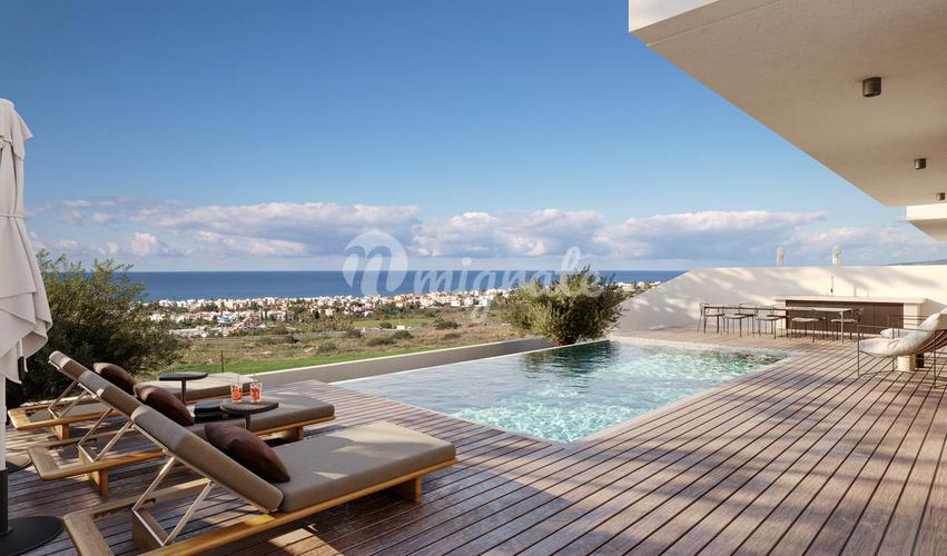 Новый престижный комплекс находится на окраине Хлораки, в богатом районе Пафоса. Проект включает в себя семь великолепных вилл с видом на море, частными бассейнами и тремя спальнями. Он находится неда
