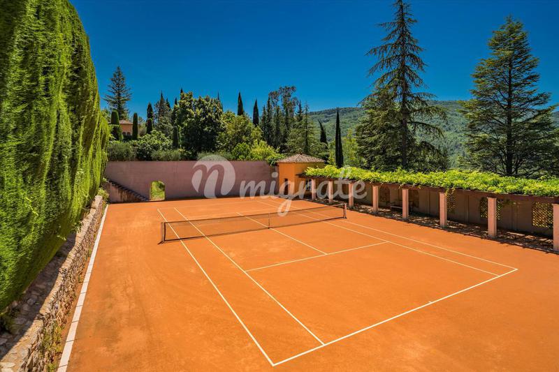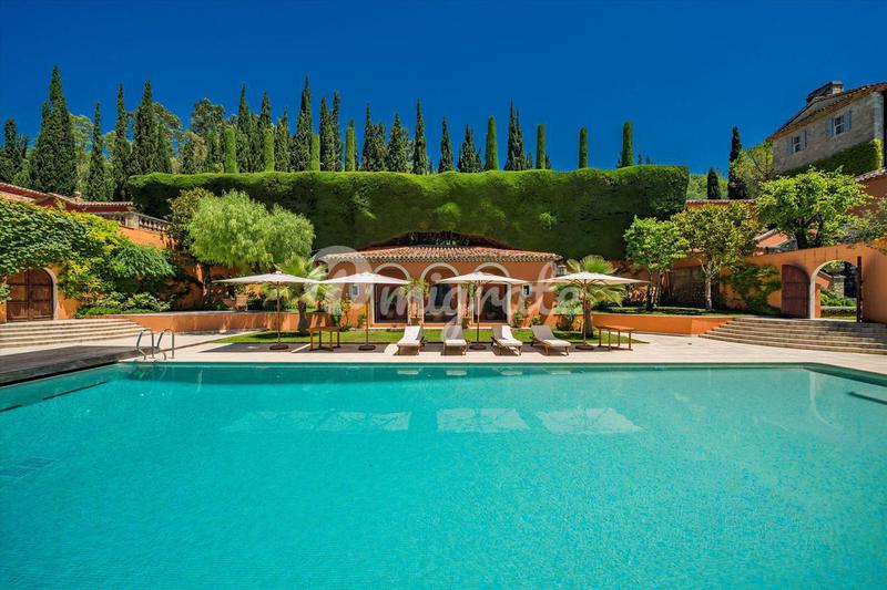 Уникальное прованское поместье с видами на море расположено в Сен-Поль-де-Ванс, в закрытом охраняемом комплексе. Поместье включает основной дом, гостевой дом, домик для охраны и коттедж для персонала.