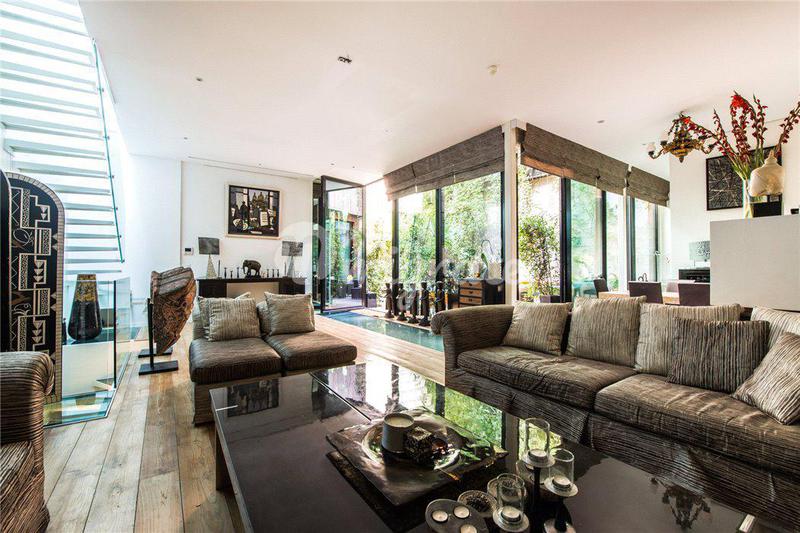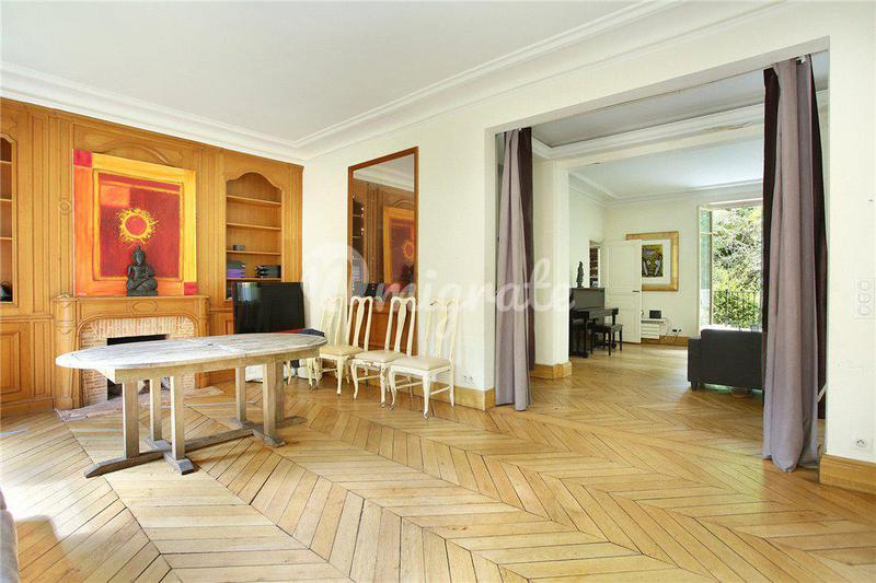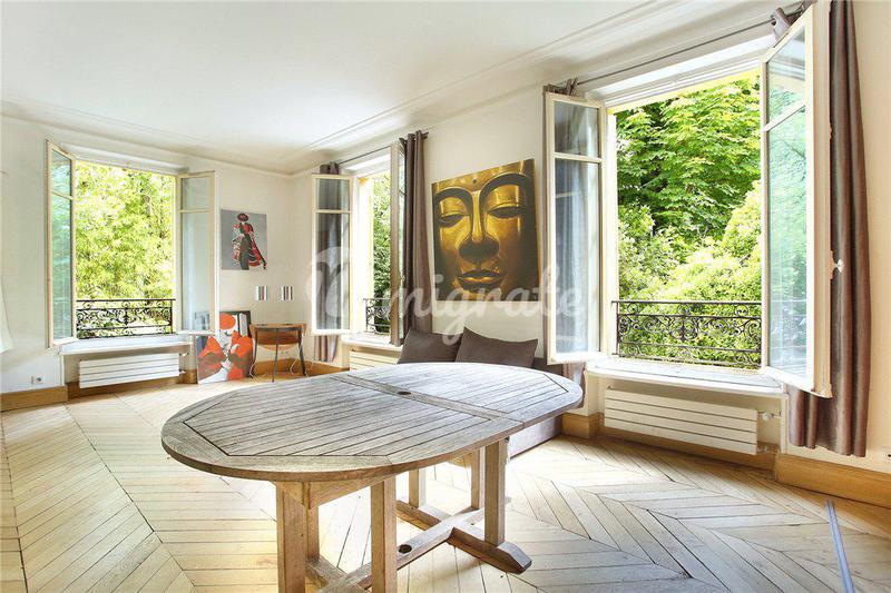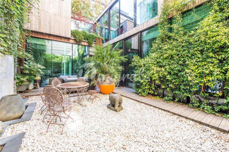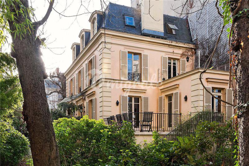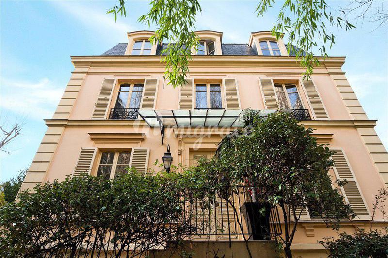 Уникальный дизайнерский дом расположен в квартале Бют-о-Кай в Париже. На участке разбит прекрасный ландшафтный сад. Вилла состоит из 3 этажей. Первый этаж включает просторную гостиную, столовую, кухню