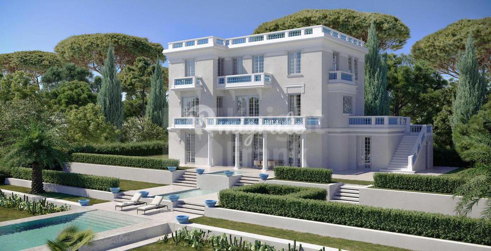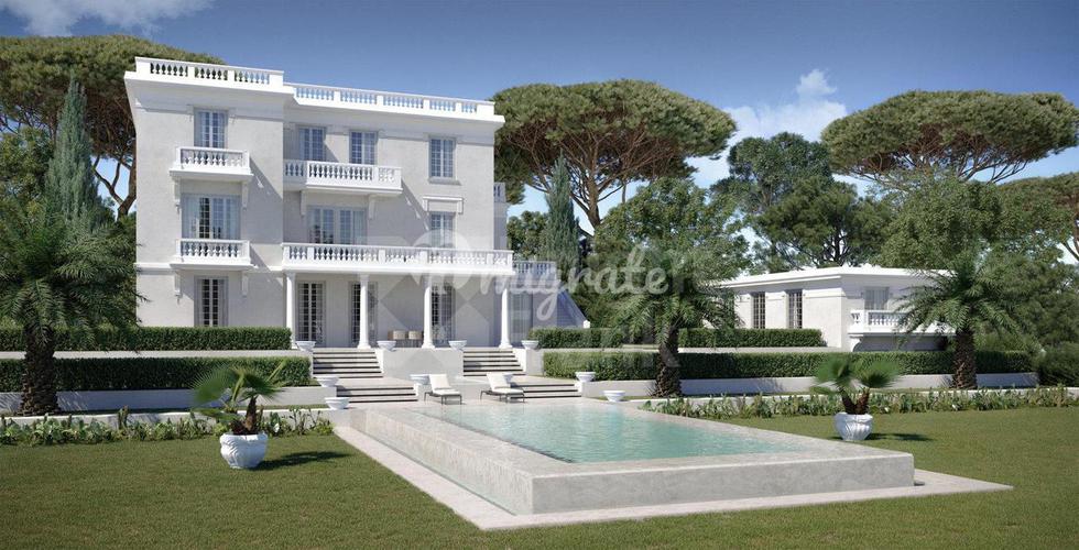 Резиденция площадью 1 200 м² состоит из нескольких зданий и расположена в сердце Канн рядом с Палм-Бич. В самом центре парковой зоны особняка находится вилла площадью 318 м² с 6 спальнями, откуда откр