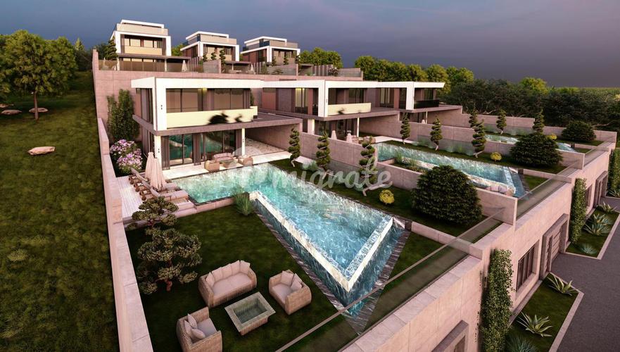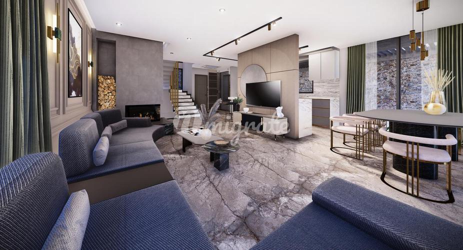 Роскошные виллы в Кушадасы, Турция. Характеристики: 3 спальни, 1 гостиная и кухня, 3 ванные комнаты, автостоянка, сад, бассейн, электрическая маркиза, электрические жалюзи, домофон, система «умный дом