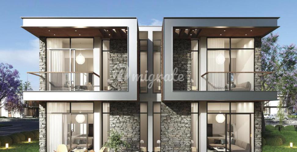 Красивые дуплексные (2-этажные) виллы 4+2 с жилой площадью 1000/1500 м2, с кухней (36 м2), холлом (24 м2), гостиной (36 м2), 4 спальнями (20 м2) и 4 ванными комнатами). К виллам примыкает просторный с