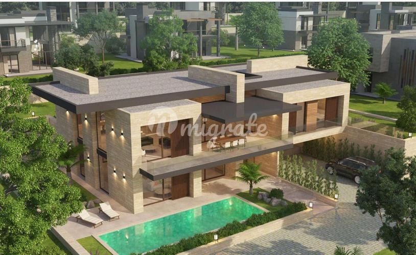 Красивые дуплексные (2-этажные) виллы 4+2 с жилой площадью 1000/1500 м2, с кухней (36 м2), холлом (24 м2), гостиной (36 м2), 4 спальнями (20 м2) и 4 ванными комнатами). К виллам примыкает просторный с
