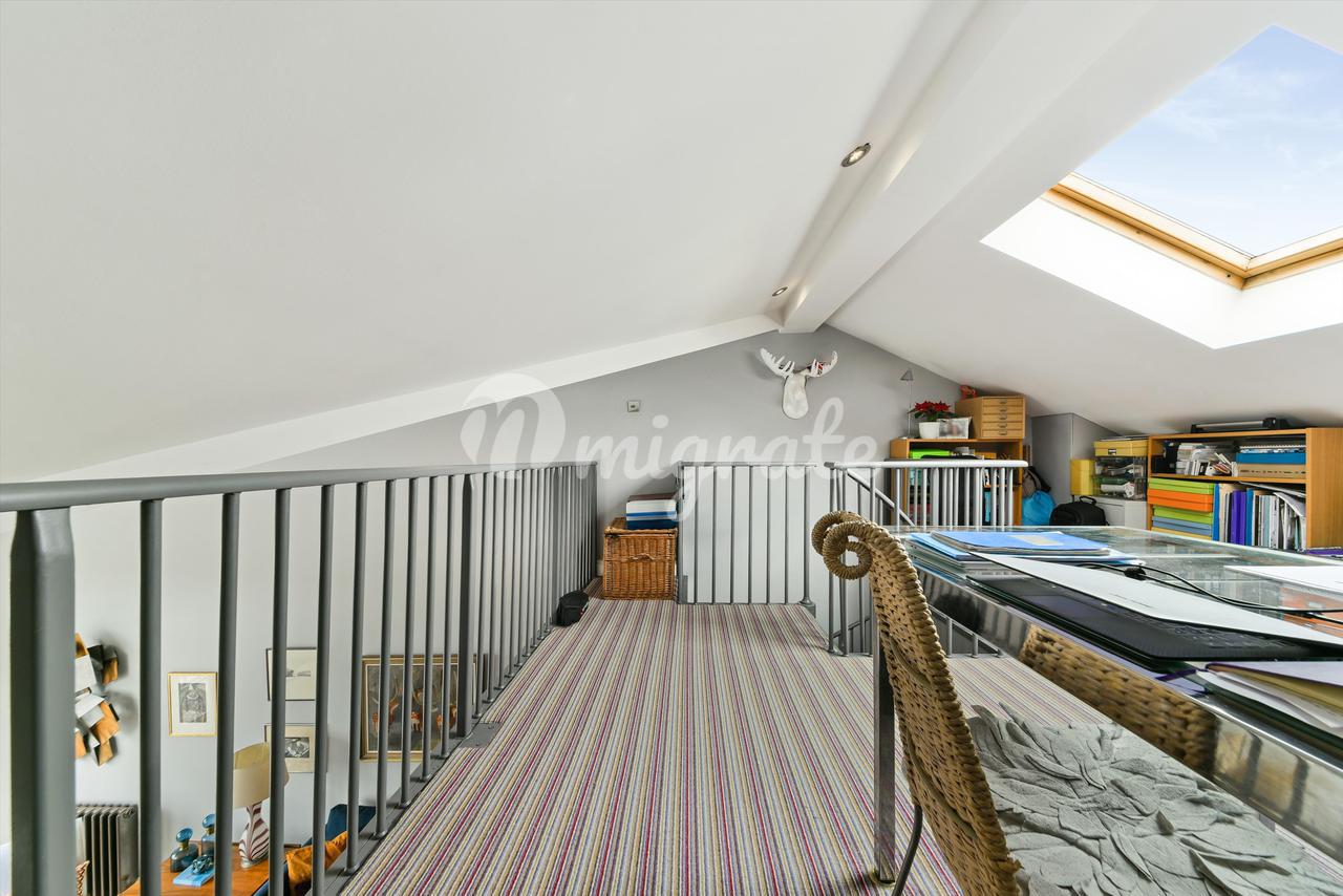 Еще один мезонин с мансардным окном выходит в приемную, которая предлагает дополнительные возможности для гибкого размещения.
