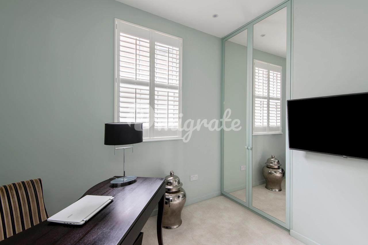Отремонтированный в соответствии со строгими стандартами, первый этаж имеет необычайно высокие потолки для дома Mews с двумя гостевыми апартаментами хорошего размера, дополнительной спальней с двуспальной кроватью и большой семейной ванной комнатой. В каждой спальне есть встроенный шкаф ручной работы и кладовая. На этом уровне также есть кладовая с современной стиральной машиной и конденсаторной сушилкой. На первом этаже есть большая открытая кухня/столовая/гостиная, которая имеет обилие света повсюду с тыльной стороной юго-западного столкновения и пропуском конюшен к фронту. На кухне есть встроенная бытовая техника, холодильник Miele с льдогенератором, винный холодильник и современная столешница из белого камня. Основная спальня с двуспальной кроватью на верхнем этаже имеет светлый и открытый дизайн со встроенными шкафами и большими карнизами для хранения вещей, ванной комнатой с душем и отдельно стоящей зеркальной ванной. Из этой спальни есть выход на частную террасу на крыше, выходящую на юго-запад.