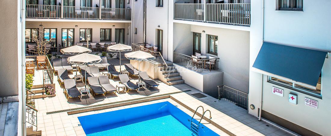 Отель расположен на побережье в сердце туристической зоны города Ханья, на северо-западе острова Крит. Площадь земельного участка составляет 1350 кв. м. Общая площадь гостиницы - 928,51 кв. м (плюс цо