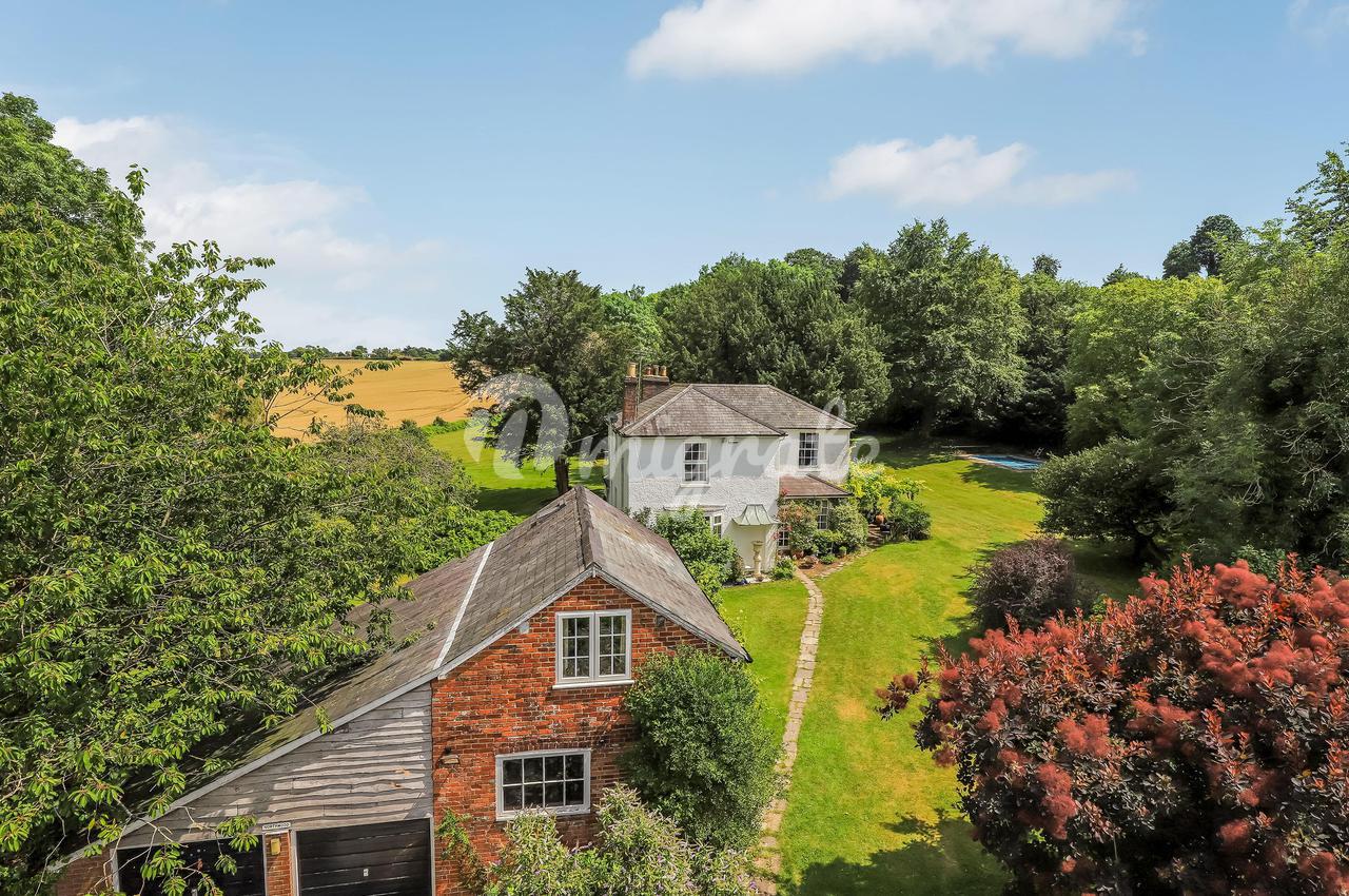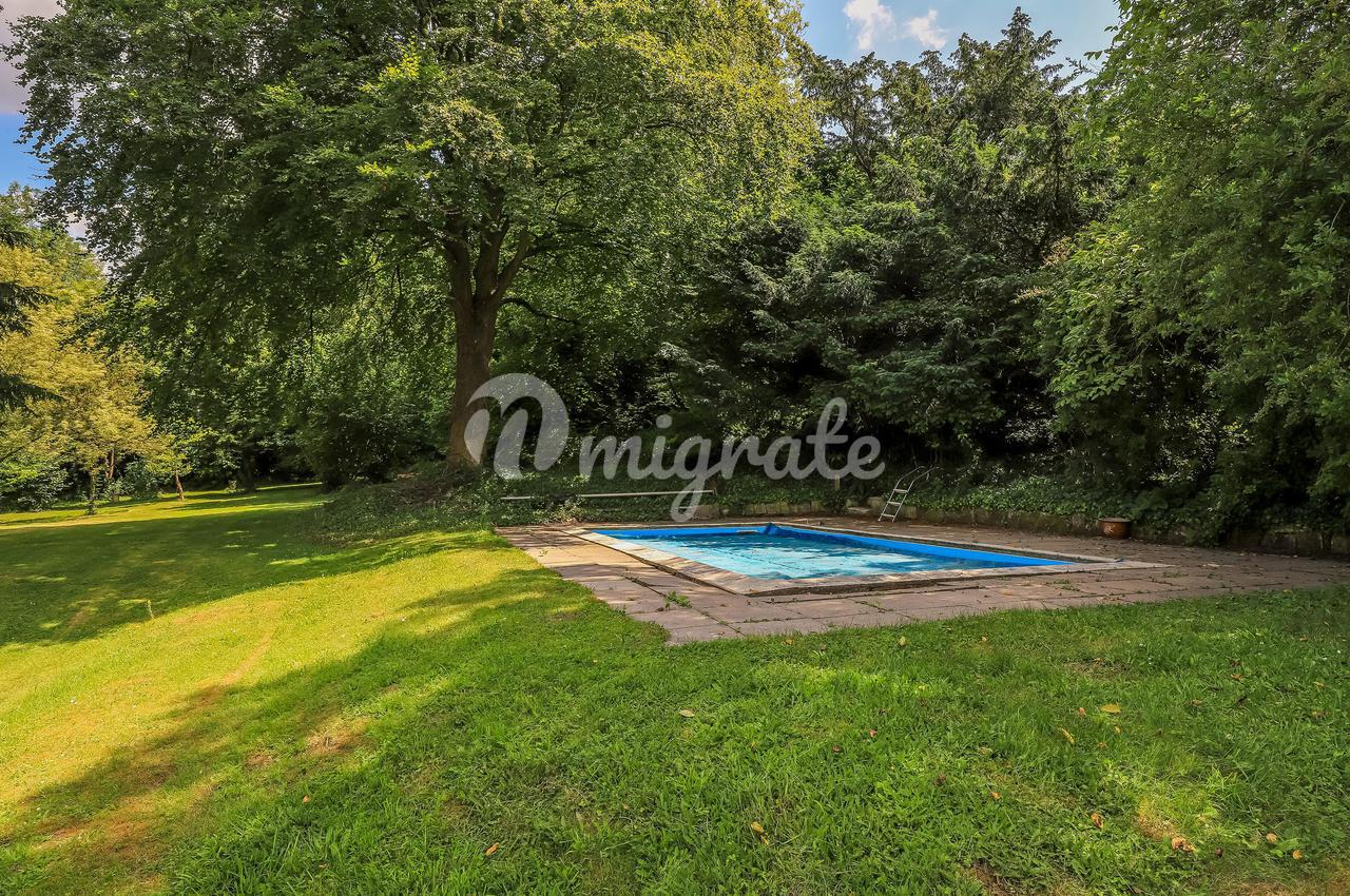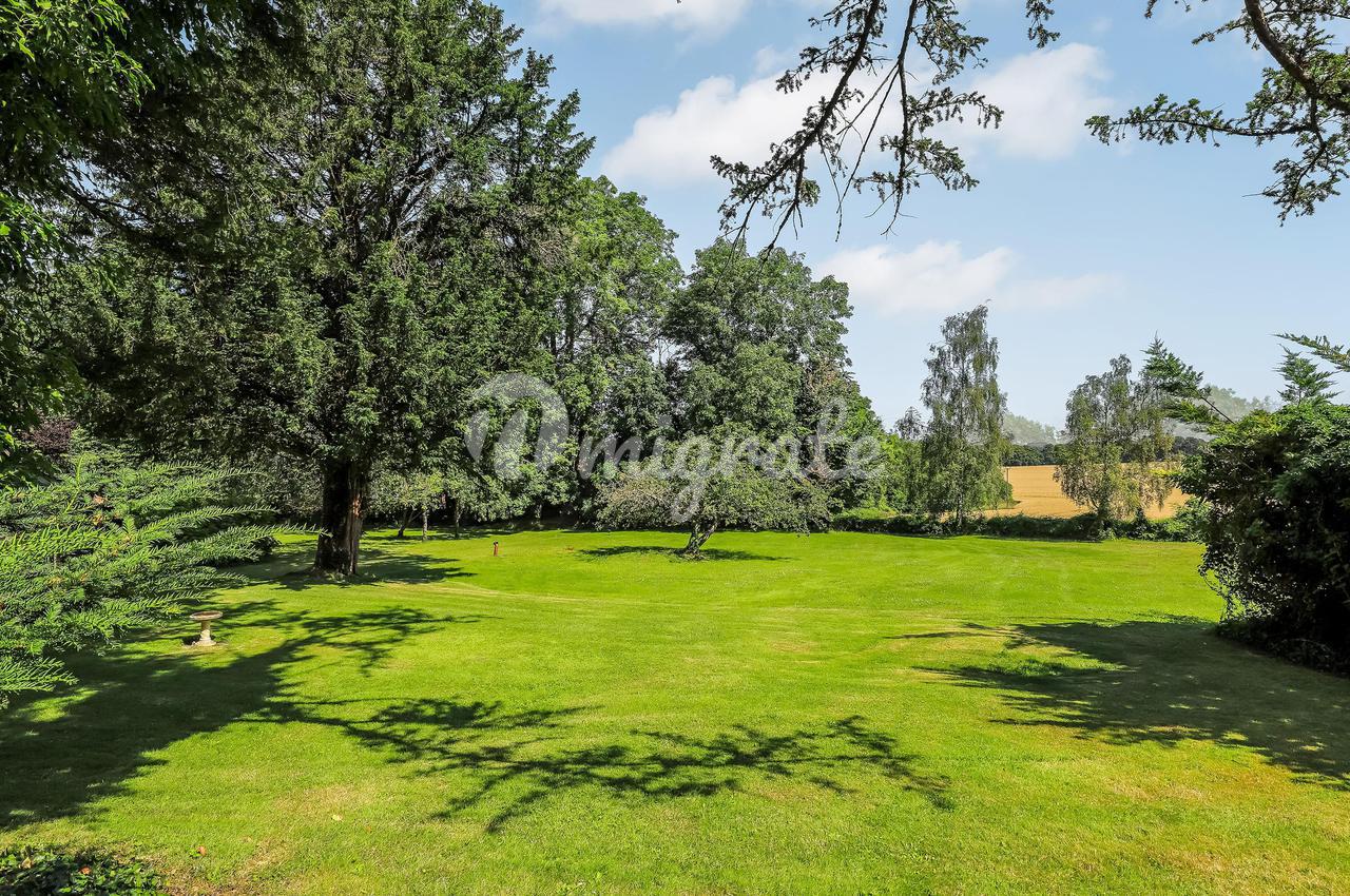 Дом расположен в центре красивого участка площадью около 3,69 акра, и на первом этаже есть отдельный каретный сарай с отдельной квартирой, а также мастерская и гараж на первом этаже. Большая часть прилегающего сада заложена газоном с лесным участком и бассейном.