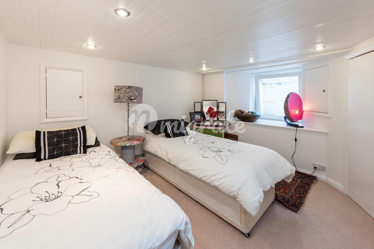 На первом этаже есть две спальни хорошего размера и семейная ванная комната, а в подвале есть еще одна комната. В настоящее время используется как гостевая спальня.
