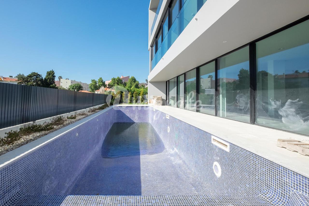 На первом этаже есть четыре спальни с ванными комнатами, а на цокольном этаже есть вспомогательная комната для бассейна, ванная комната и кладовая. На вилле также есть балкон, с которого открывается панорамный вид на реку Тежу. На цокольном этаже площадью 127 кв. м есть вспомогательное помещение для бассейна, ванная комната и кладовая.