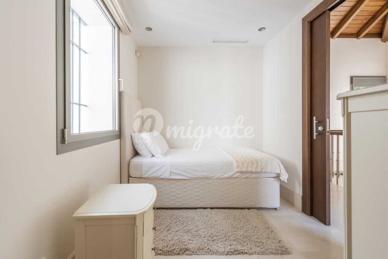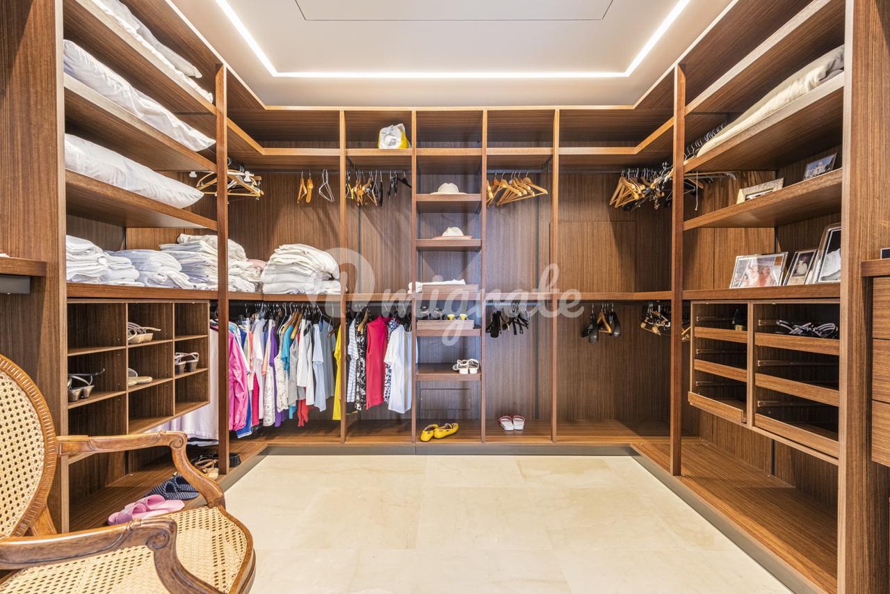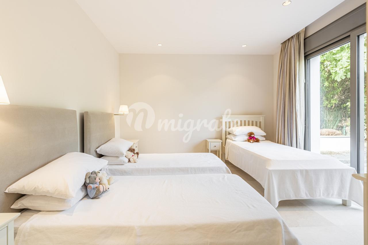 Отель приветствует посетителя старинной входной дверью, которая открывается в фойе с высокими потолками, украшенными красивой лампой, и мраморной лестницей с железными перилами, ведущей на верхний этаж. Первый уровень включает в себя гостиную с камином, внутренний дворик с фонтаном, четыре спальни, гостевой туалет, полностью оборудованную кухню современного дизайна с зоной для завтрака и выходом как на террасу, так и в отдельную столовую. На верхнем уровне находится главная спальня с гардеробной, ванная комната с ванной и душем и собственная открытая терраса с видом на море. Завершает этот этаж еще одна спальня с собственной ванной комнатой, встроенными шкафами, кабинетом и балконом.