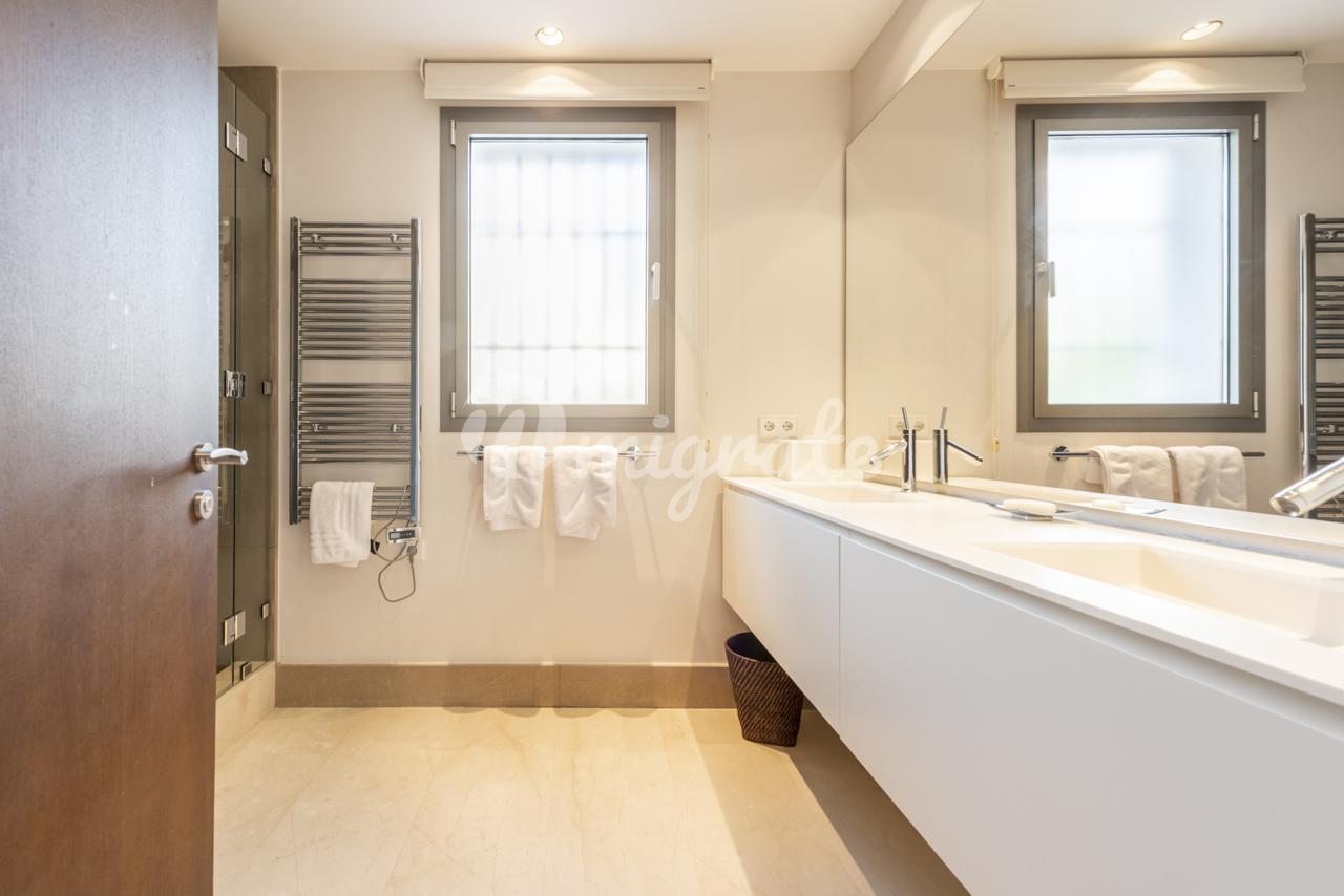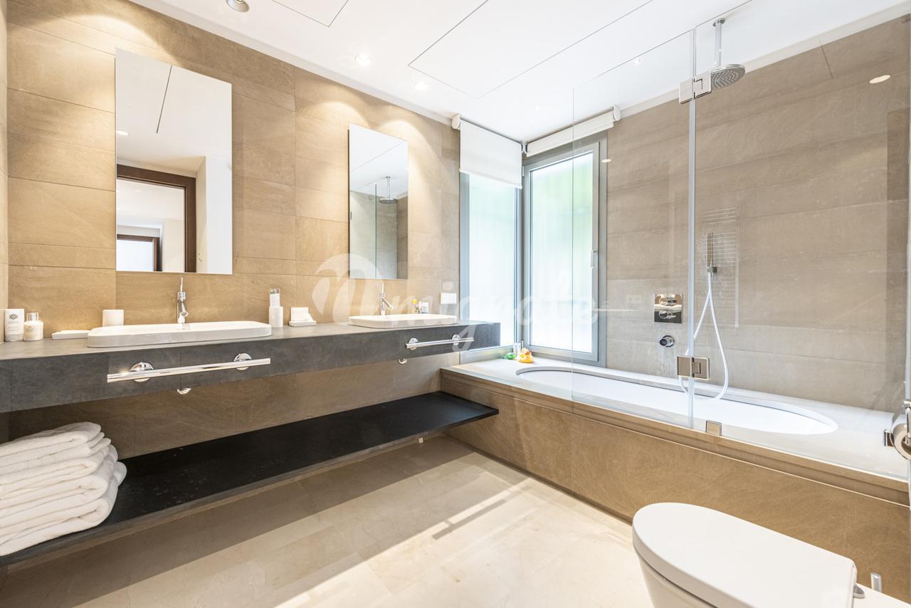Кроме того, в собственности есть кондиционер, водяные полы с подогревом по всей территории и электрические в ванных комнатах, мраморные полы, двойное остекление и зона у бассейна с большими террасами и здание в стиле замка, в котором находится ванная комната.