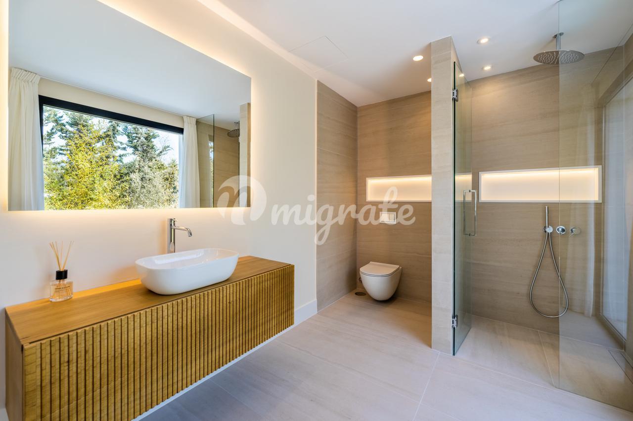 Вилла была построена по самым высоким стандартам, из нее открывается прекрасный вид, и предлагает все необходимое, чтобы сделать этот комфортабельный дом идеальным для круглогодичного проживания или идеальным местом для отдыха. Он состоит из трех этажей. На первом этаже есть большая гостиная с большими окнами, которые пропускают свет и сливают внешний вид с внутренним, бассейн и красивые пышные сады. Современная и функциональная кухня с центральным островом, гостиная с камином, практичная спальня с ванной комнатой и гостевой туалет завершают распределение этого уровня. Есть крытое парковочное место на две машины. На верхнем этаже находятся три спальни с ванными комнатами и террасами. На цокольном этаже находится гостевая спальня с ванной комнатой, многофункциональное помещение, которое можно использовать как игровую комнату или кинозал, а также кладовая.