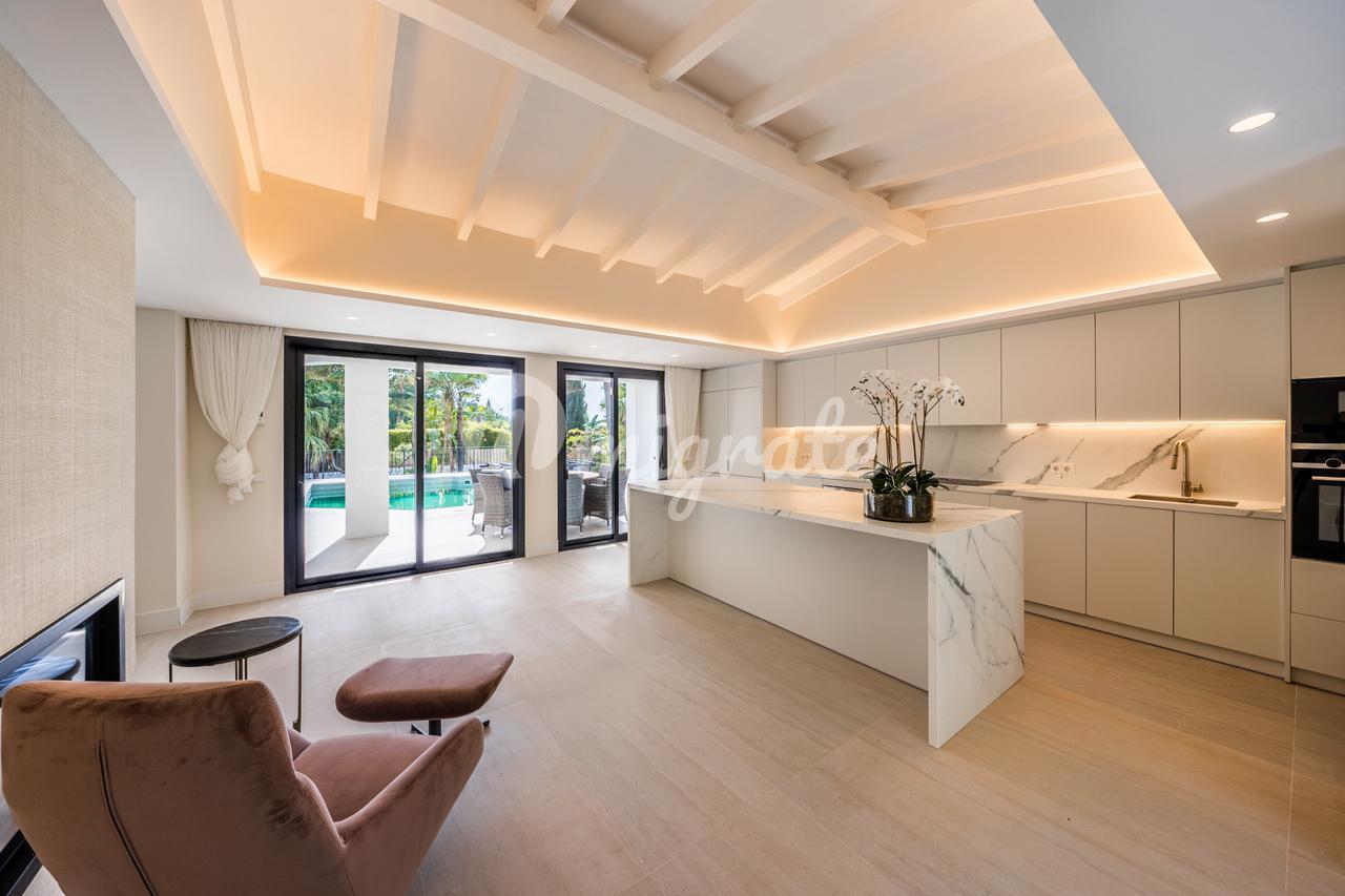 Вилла в современном стиле в самом сердце Параисо Медио, тихого и приятного жилого района, окруженного полями для гольфа, примерно в 2 км от пляжа, в 11 км от Пуэрто Бануса и недалеко от ближайшего коммерческого района с барами, ресторанами, государственными школами, банками и магазинами.
