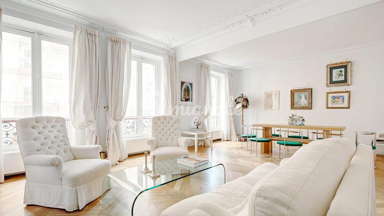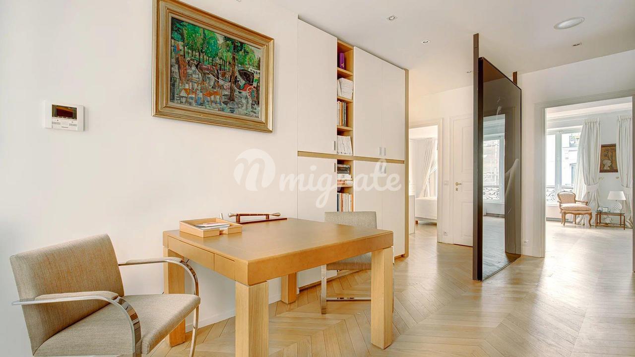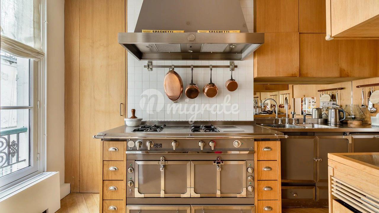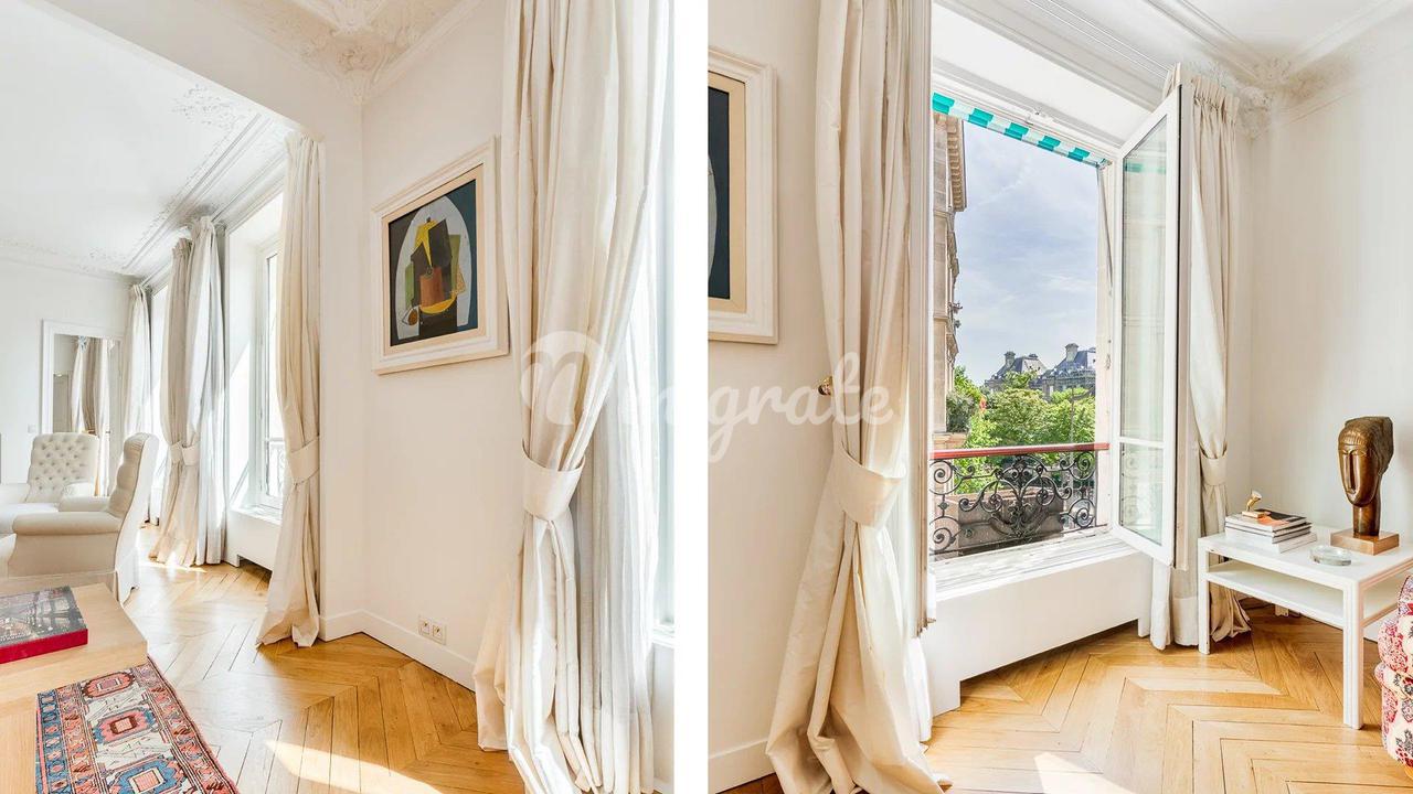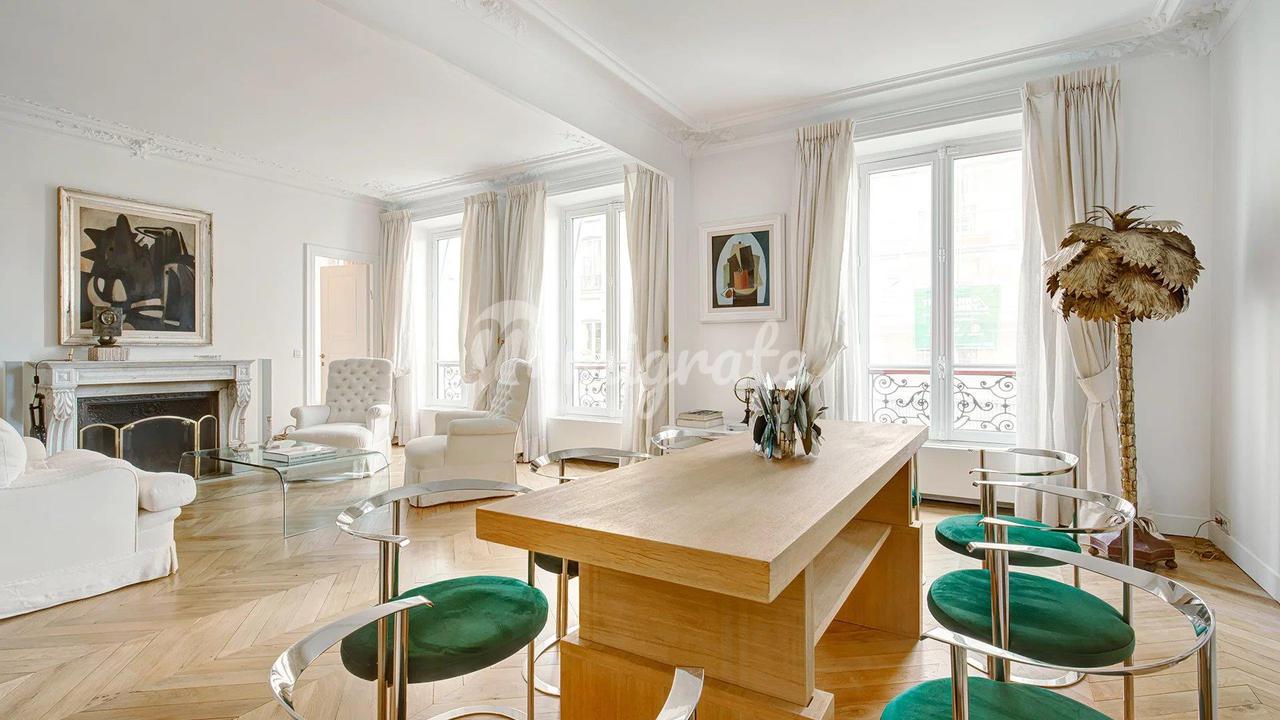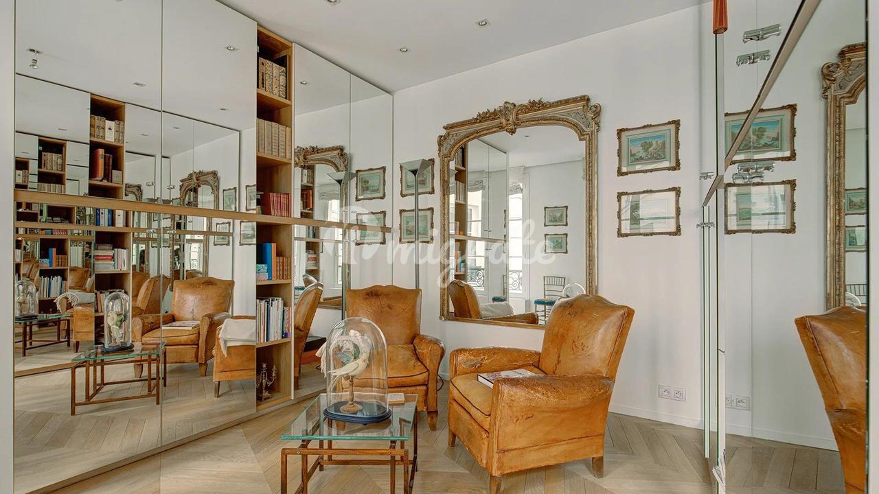 Эти апартаменты расположены на втором этаже, куда можно подняться на лифте, в красивом здании 19 века с консьержем, недалеко от всех магазинов и парижских памятников. Это свойство состоит из прихожей, ведущей в полностью оборудованную кухню-столовую La Cornue, и гостиной с несколькими окнами, выходящими на Люксембургский сад. Существует большой кабинет, ведущий в главную спальню с гардеробной. Здесь есть столовая, подсобное помещение и еще две спальни люкс Этажом выше находится квартира с гостиной, кухней, спальней и большой ванной комнатой.