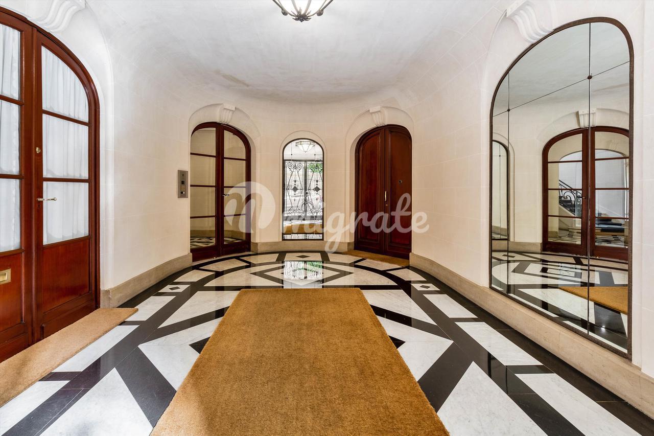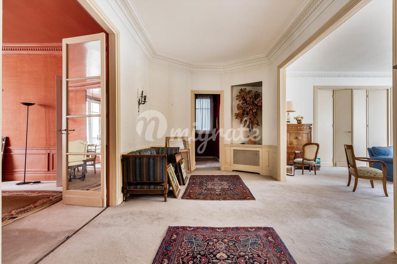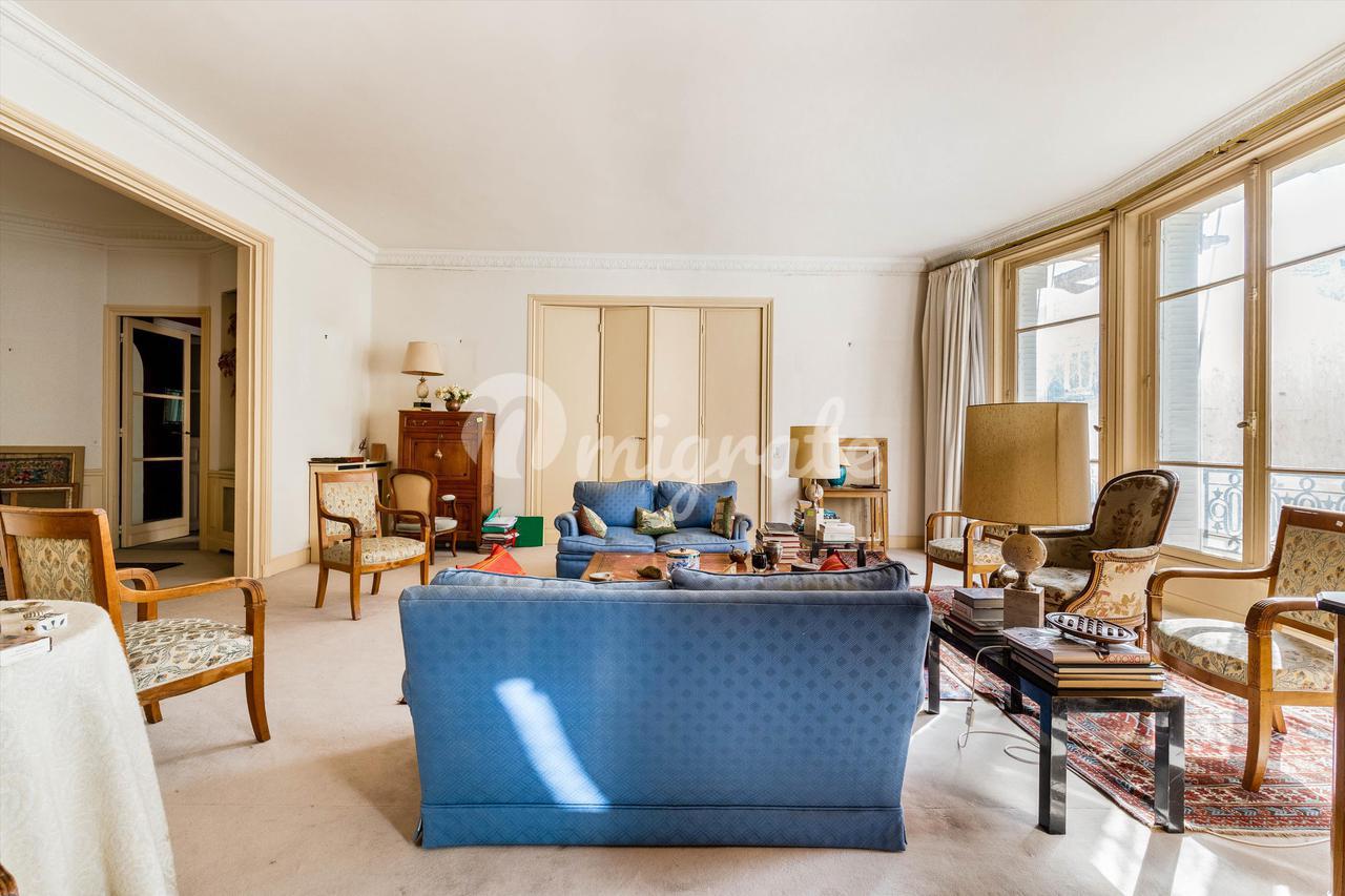 На тихой улице, расположенной на третьем этаже превосходного старого каменного здания, оборудованного лифтом, великолепная семейная квартира площадью 233,58 кв.м. Carrez law. Это исключительное свойство выгодно отличается идеальной планировкой, которая предлагает двойную гостиную с видом на юг, столовую, большую отдельную кухню, четыре спальни, включая люкс с ванной комнатой и туалетом, а также еще одна ванная комната с туалетами и гостевыми туалетами. На седьмом этаже расположены три подсобных помещения площадью 6,90 кв.м, 10,84 кв.м и 6,16 кв.м Carrez law, куда можно подняться на лифте, а также большой подвал дополняют это свойство. Охраняемое здание с постоянным смотрителем