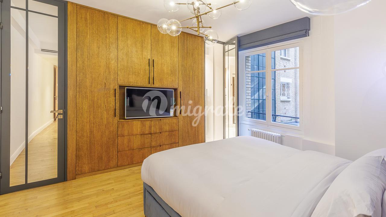 Набережная д'Орсе. Квартира с роскошным ремонтом по проекту архитектора, продается с мебелью. Апартаменты Carrez Law площадью 134,30 кв. м расположены в роскошном каменном здании. Из окон открывается беспрепятственный вид на Сену. Идеальная планировка без потери пространства включает в себя прихожую, двойную приемную площадью 44 кв.м с открытой оборудованной кухней (с винным погребом, гранитной столешницей, плитой со встроенной вытяжкой), две детские спальни со шкафами, изготовленными на заказ, которые делят душевую с туалетом и гостиную. Главная спальня площадью 30 м2 с душевой, туалетом и гардеробной. Гостевой туалет рядом со стойкой регистрации. Полностью кондиционированная квартира, столярные изделия на заказ (ель, орех, дуб и марот), мрамор Calacatta и Opium. Красивый свет. Парковочное место в здании и подвал дополняют эту недвижимость.
