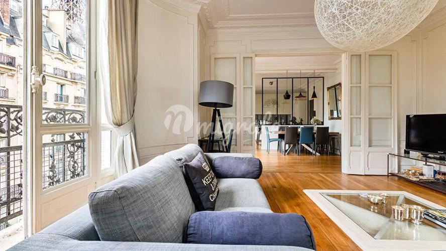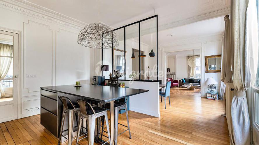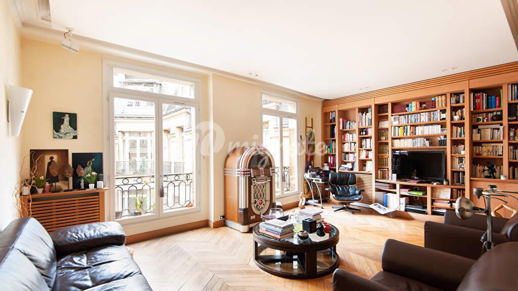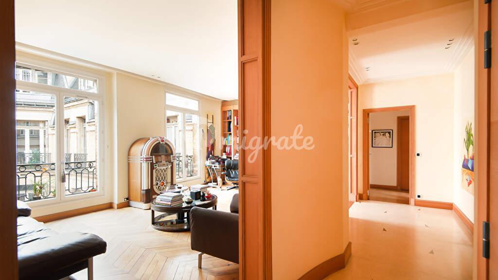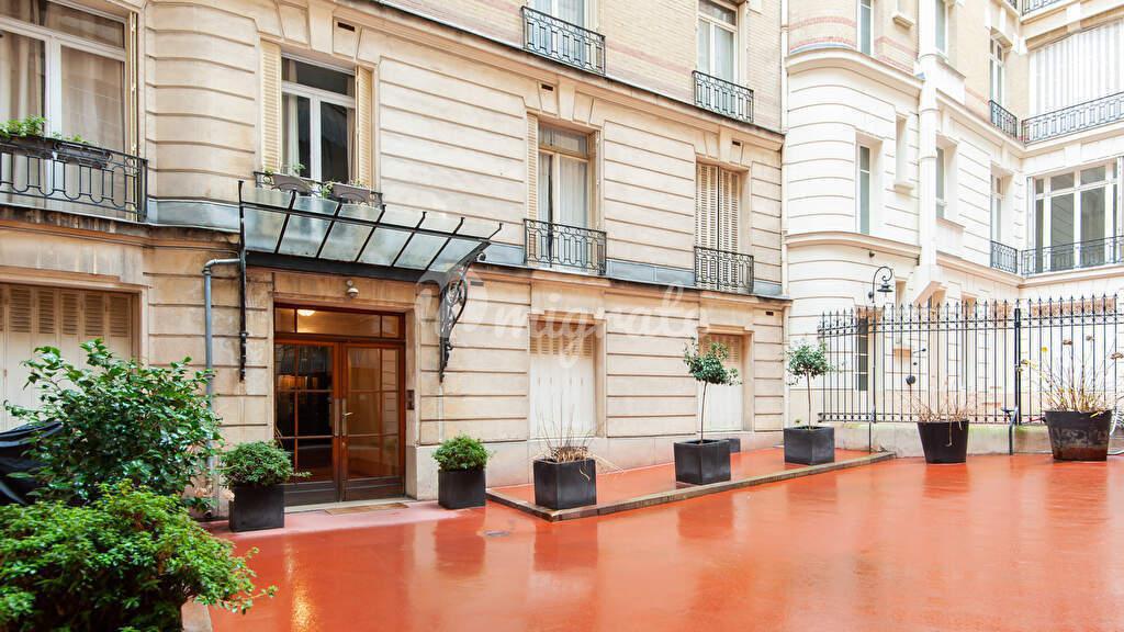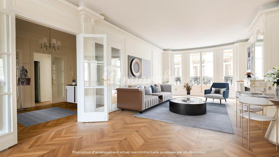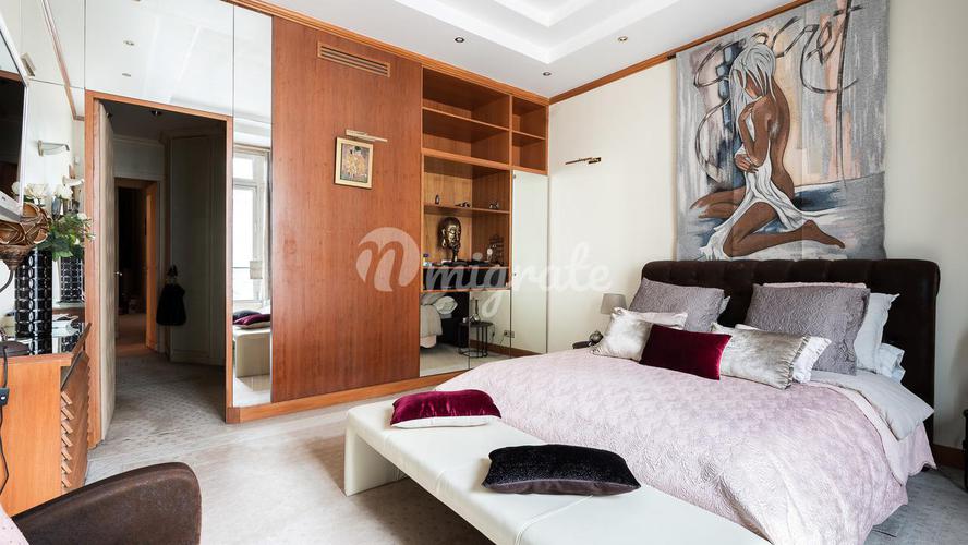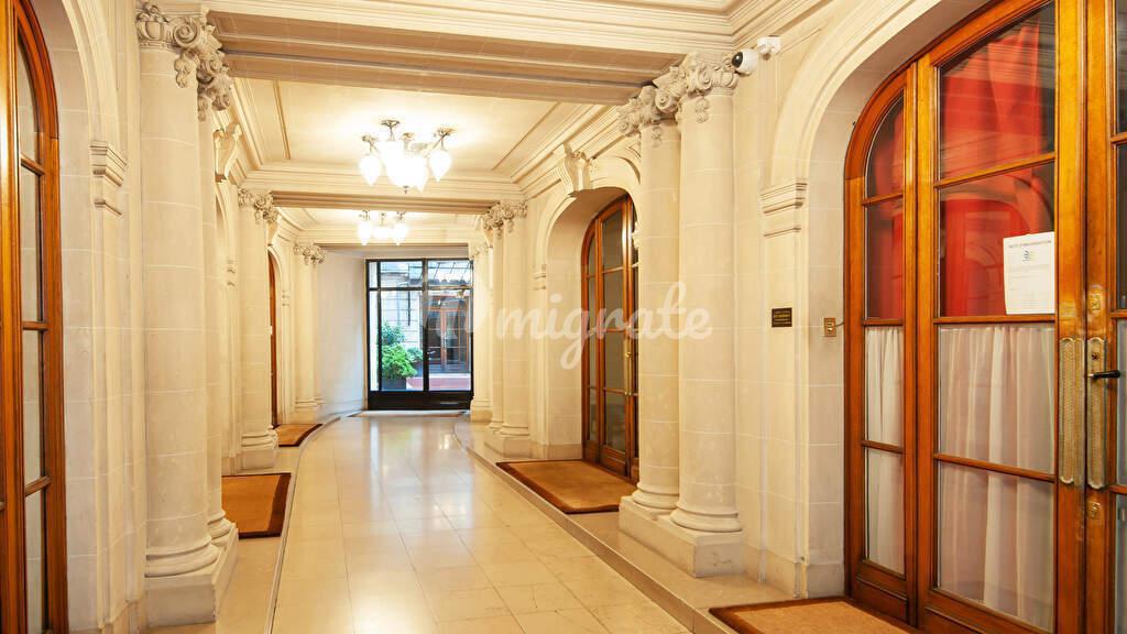 Эта квартира площадью 138,68 кв. м расположена на тихой улице в самом сердце Золотого треугольника, между улицей Франсуа 1 и авеню Монтень, на шестом этаже великолепного здания из каменного камня 1920 года постройки. Carrez и 139,18 кв.м. на земле. Идеальный план имеет большой вход, ведущий в гостиную с видом во двор, затем налево, столовую с видом на двор и первую спальню с ванной комнатой. Справа мы попадаем в две спальни, душевую с туалетом и гардеробную. Услуги отличного качества. Очень много шкафов. Две служебные спальни, одна площадью 9,40 кв.м. и другая площадью 8,25 кв.м., а также два подвала дополняют эту недвижимость.