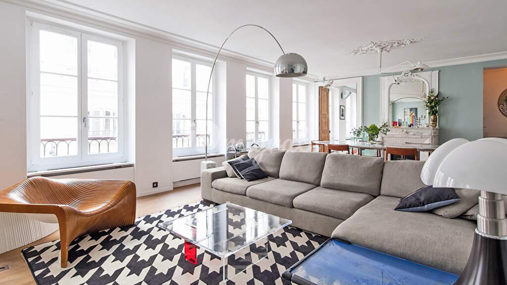 Всего в двух шагах от Bonne Nouvelle, магазинов и метро, на тихой улочке, rue de l'chiquier. На первом этаже, по лестнице красивого безопасного здания, находится великолепная квартира площадью 131,53 м² (126,24 м² по закону Карреза), полностью отремонтированная архитектором с высококачественными услугами. Он единственный на этаже и его план включает в себя прихожую, большую гостиную площадью 44 м² с пятью окнами, встроенную и оборудованную кухню, четыре спальни или три спальни и кабинет, три ванные комнаты, две из которых примыкают к спальни, четыре туалета, два из которых независимые, и прачечная. Три кладовки в подвале дополняют это свойство. Очарование, красивый свет и спокойствие. Он соблазнит вас своей оптимизированной и гибкой планировкой с тремя возможными входами.