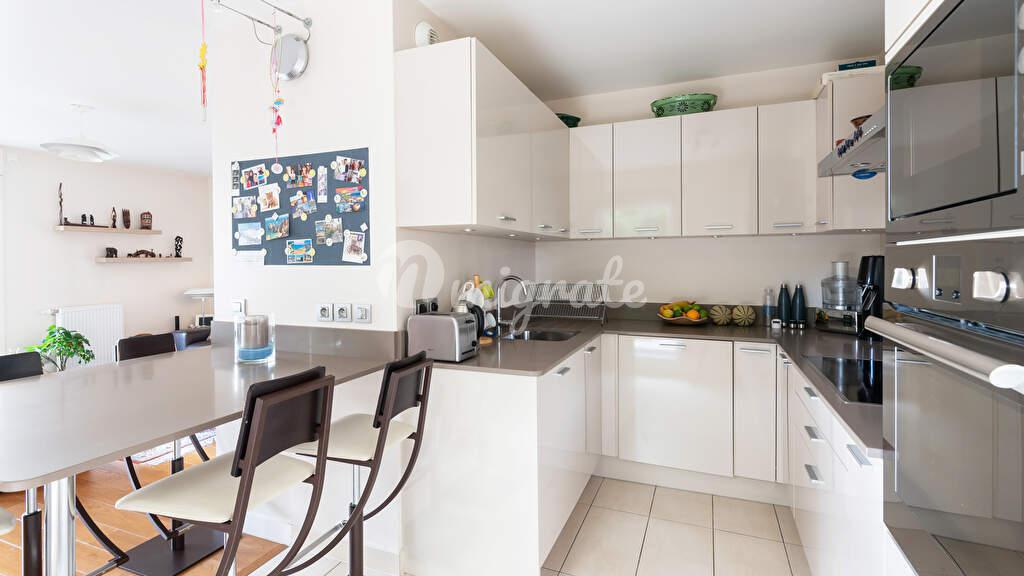 В ДУПЛЕКСЕ, на втором и третьем этажах на лифте недавнего здания 2011 года, в очень хорошем состоянии, с домработницей, эта семейная двухуровневая квартира площадью 104,55 кв.м. Carrez и 107,60 кв.м. на земле имеет сад и террасу общей площадью 64 кв.м. Тихий, он включает в себя на первом уровне прихожую, гостиную 21,60 кв.м., полуоткрытую и оборудованную кухню, спальню и отдельный туалет. На втором уровне три спальни, включая главную спальню с ванной комнатой и балконом площадью 7 кв.м. с видом на террасу, а также душевую с туалетом. Работа не нужна. Подвал и парковочное место дополняют эту недвижимость в популярном месте, недалеко от магазинов и транспорта.