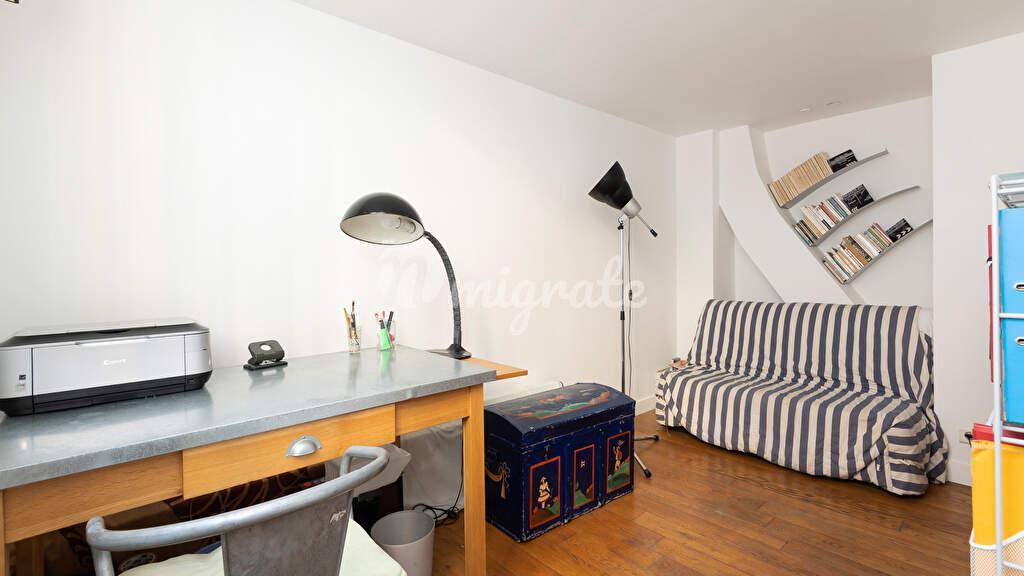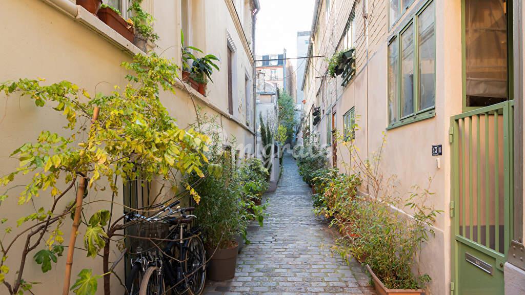 Вне поля зрения, посреди очаровательного переулка, усаженного цветами, превосходный дом, расположенный на четырех этажах, площадью 121,58 м² (101,95 м² по закону Карреза). Он включает в себя на первом этаже прихожую, оборудованную кухню, выходящую в столовую, кладовую и отдельный туалет. На первом этаже, на антресоли, гостиная и офисное помещение. На втором этаже две спальни с гардеробными, ванная комната и отдельный туалет. На верхнем этаже спальня с душевой и гардеробной. Этот нетипичный отель в индустриальном стиле имеет много встроенных складских помещений, компактную планировку и находится в популярном месте, недалеко от магазинов на улице Дамремонт и станции метро Lamarck-Caulaincourt.