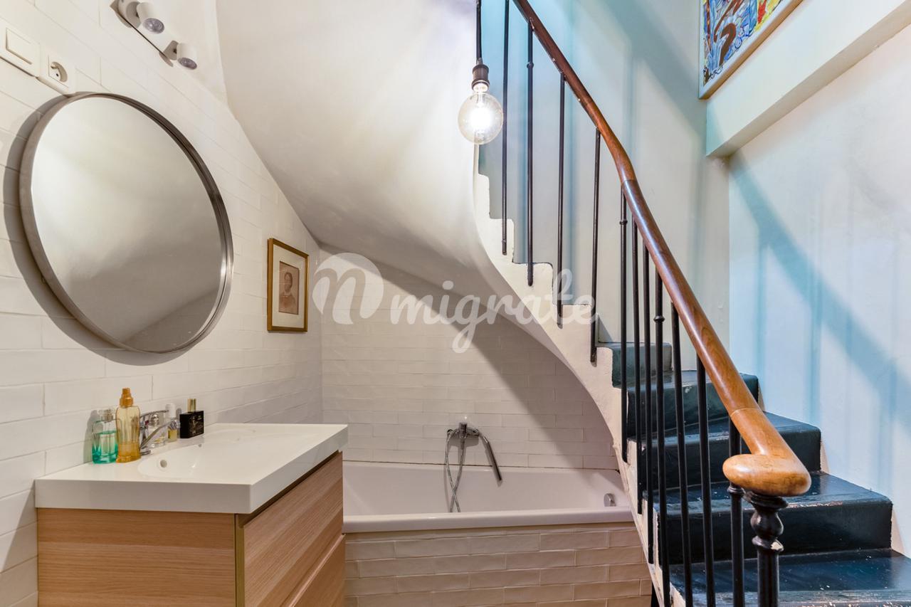 В самом сердце Рэми Виллидж, на тихой улице, превосходный лофт пересечения площадью 130,27 кв.м. по закону Карреза и 144,18 кв.м. на земле. В абсолютном спокойствии на первом этаже есть прихожая с кладовой, большая гостиная с очень просторной кухней открытого типа и спальня во дворе с прилегающей ванной комнатой. На нижнем уровне две большие спальни, ванная комната и отдельный туалет. Это нетипичное свойство соблазнит своими прекрасными объемами и сильным потенциалом. Коммерческое использование.