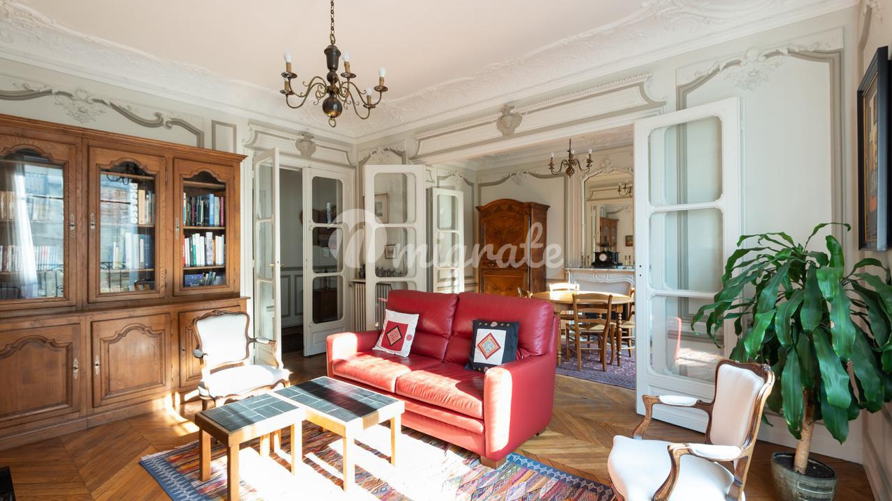 На границе 9-го и 18-го округов. На тихой и зеленой улице, расположенной на четвертом этаже с лифтом в превосходном здании из песчаника, в очень хорошем состоянии, эта великолепная семейная квартира площадью 156,72 кв.м., пересекающая закон Карреза, была отремонтирована со вкусом и элегантностью. . Он предлагает план без потери пространства: большой вход с окном, великолепная двойная гостиная, главная спальня с душевой, три просторные спальни в абсолютном спокойствии, душевая, отдельная кухня с кладовой, два независимых туалета. а также многие тома. Сохранено очарование старины: деревянные полы, красивая лепнина и камин в каждой комнате. Тихий и светлый, он предлагает очень красивые объемы с потолками высотой 3,10 м. Два служебных помещения и два подвала дополняют это свойство в непосредственной близости от транспорта и магазинов. Возможность приобретения дополнительного парковочного места, расположенного в 200 м от квартиры.