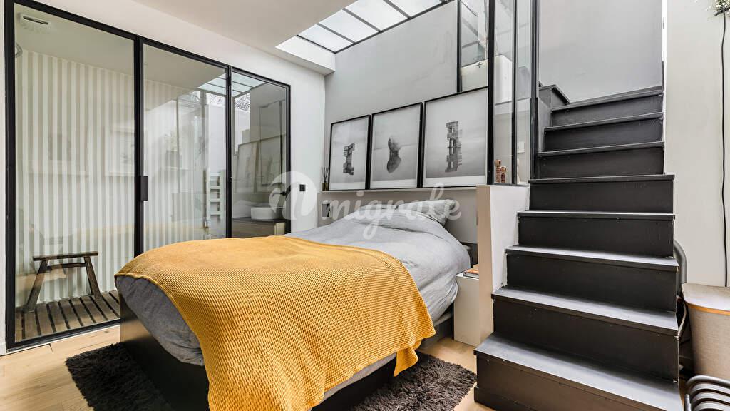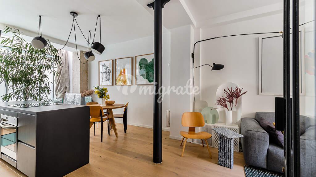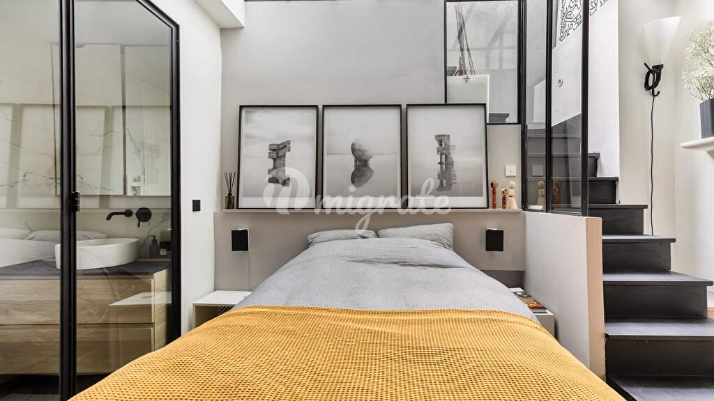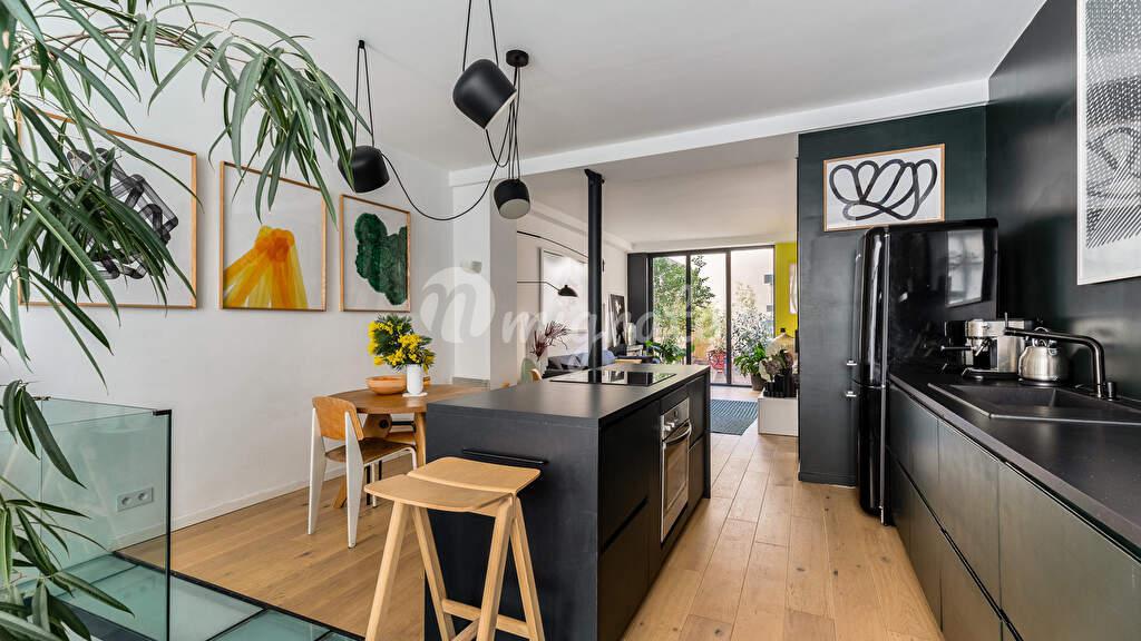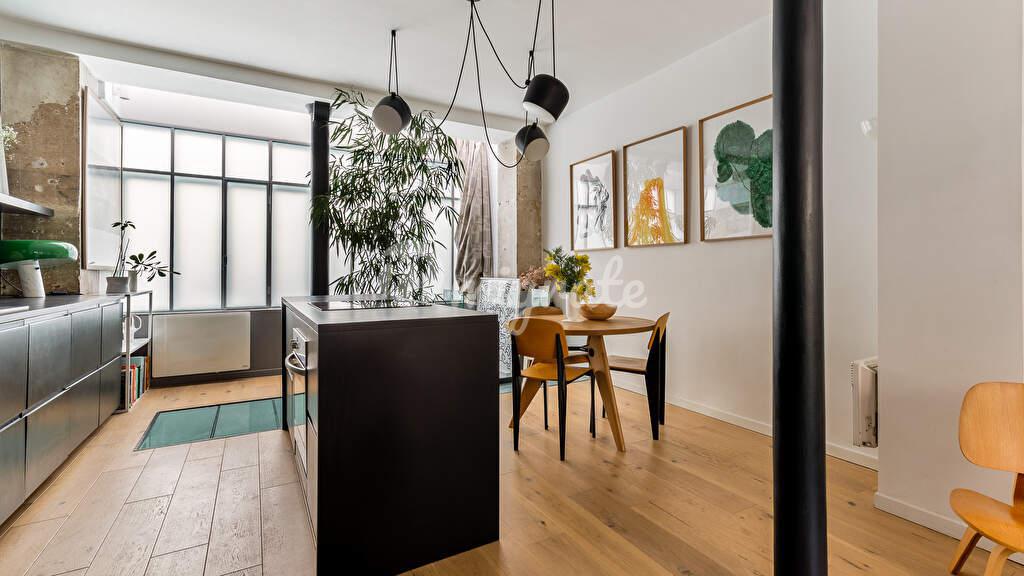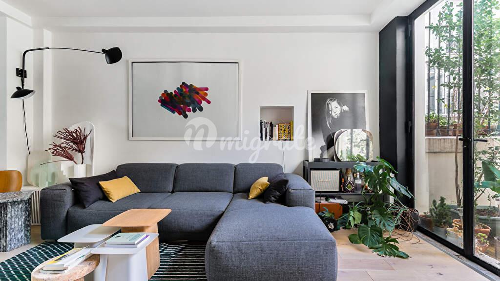 Идеально расположенный на тихой улице в самом сердце Abbesses. Тихая, красивая квартира в стиле лофт площадью 59,01 кв.м. по закону Карреза и 64 кв.м. на первом этаже ухоженного здания. Очень хороший план без потери пространства включает в себя двойную гостиную с видом на красивый внутренний двор для частного использования в тихом районе, открытую оборудованную кухню, офисную зону и отдельные туалеты. В гибком, спальня с кладовой и душевой комнатой. В отличном состоянии, он был полностью отремонтирован с использованием качественных материалов и предлагает красивые объемы с потолками высотой 3,10 м. Подвал завершает это свойство.