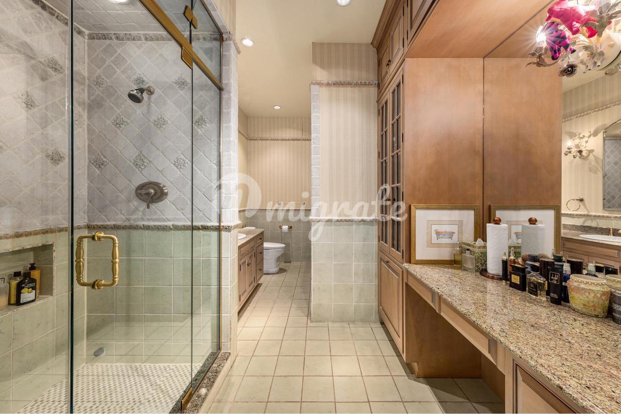 Основная спальня просторная, в ней достаточно места для удобной гостиной зоны и кровати размера "king-size". В этой спальне есть красиво оформленная гардеробная большого размера и дополнительный шкаф, отделанный кедром. В собственной ванной комнате есть душевая кабина, ванна для купания и джакузи, а также биде. В ванной комнате также есть отличное место для прилавка.