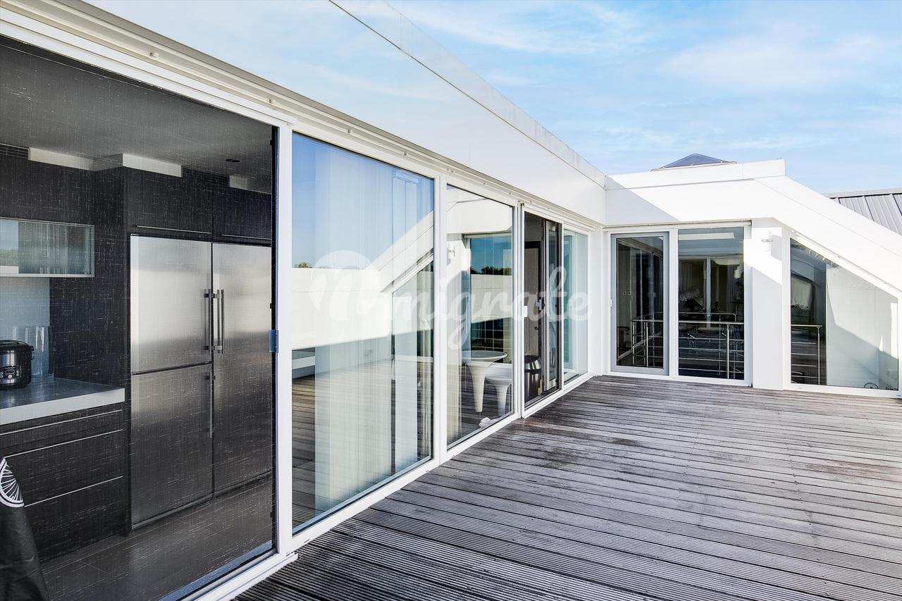 На верхнем этаже квартиры расположена большая, светлая и невероятно стильная столовая с прямым выходом на потрясающую террасу на крыше.