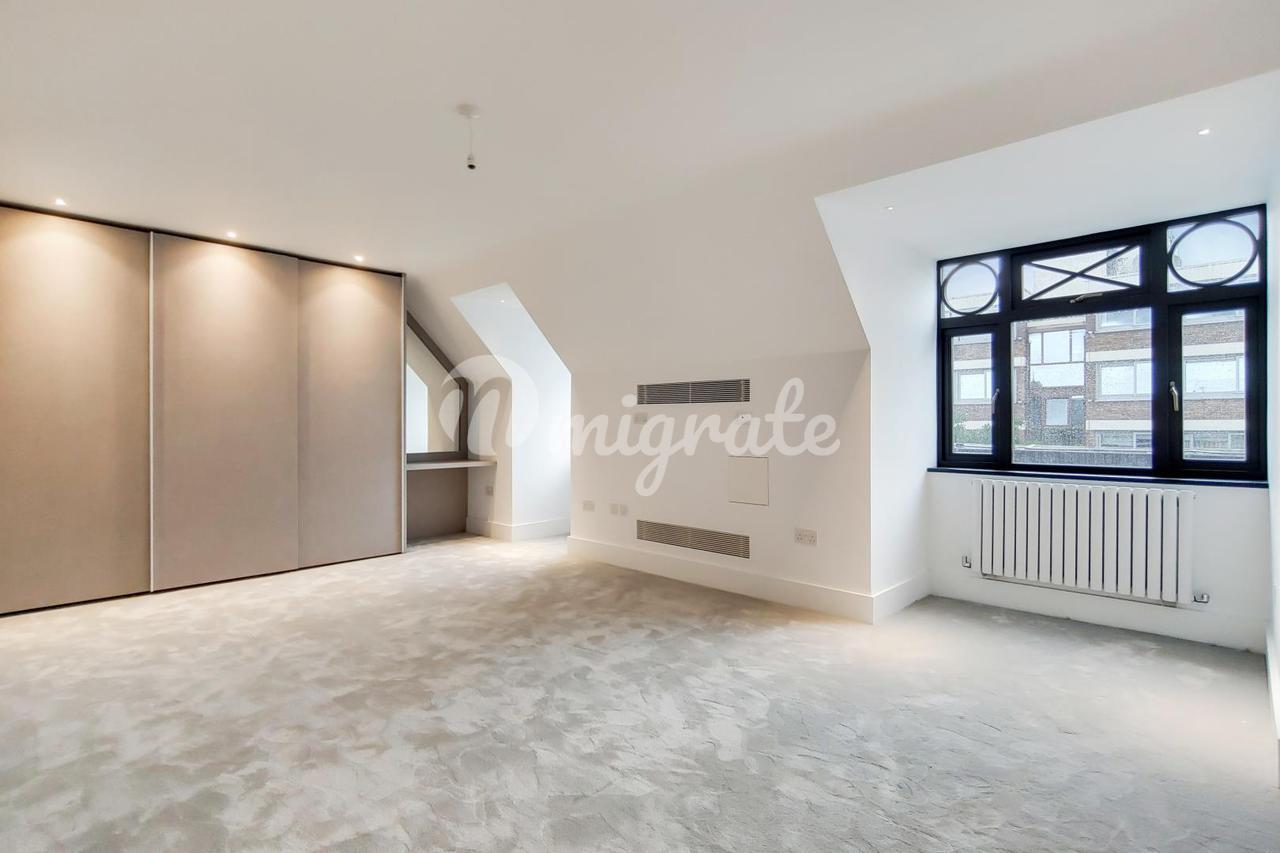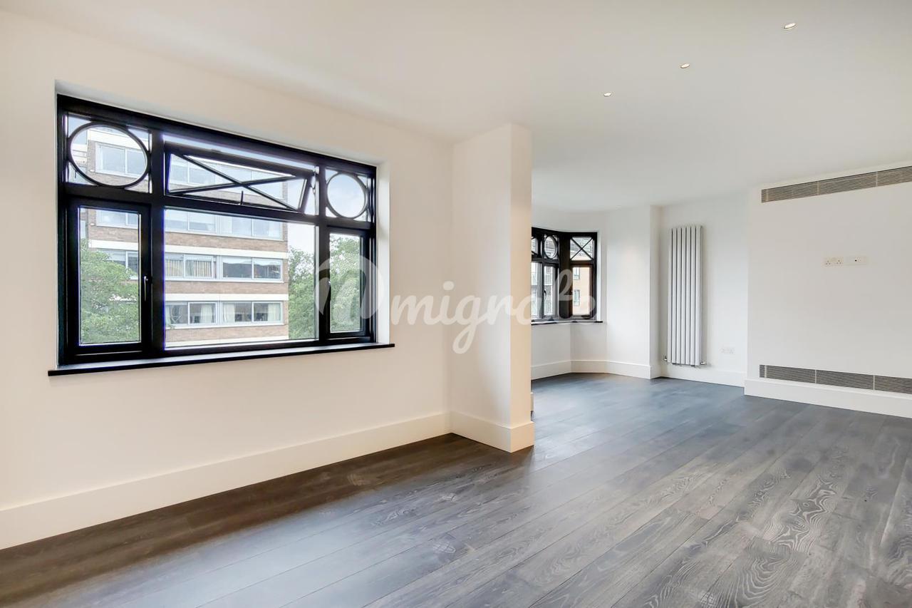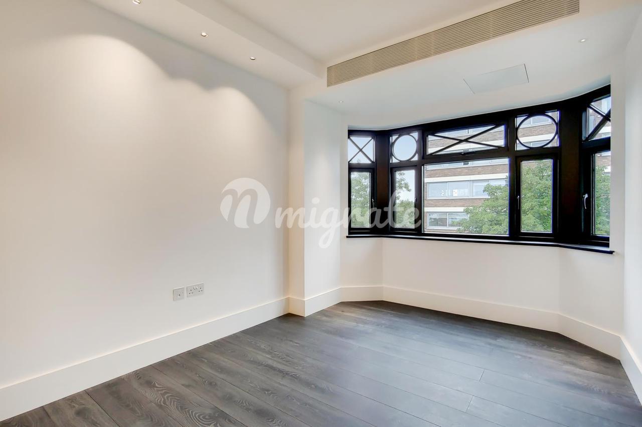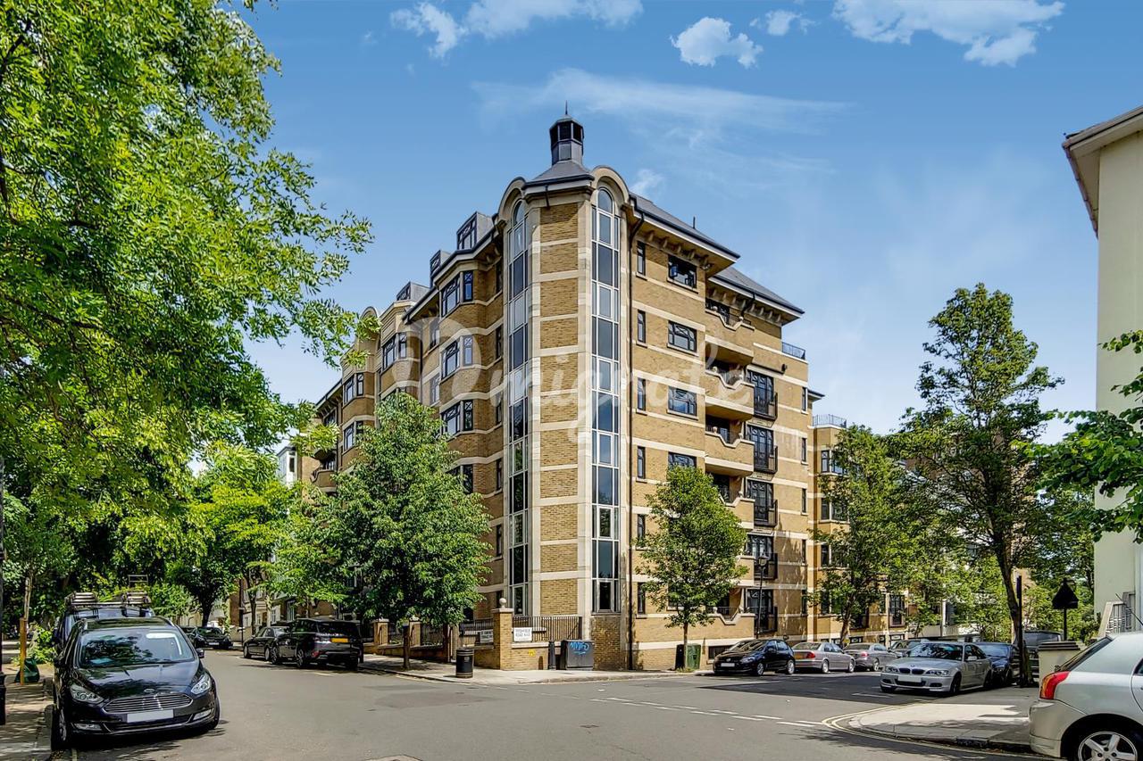Это впечатляющее семиэтажное здание находится на углу усаженной деревьями жилой улицы в Сент-Джонс-Вуд, одном из самых престижных районов Лондона. На тихих улицах практически нет сквозного движения, и есть много уличных парковочных мест благодаря отсекам для разрешений только для жителей.