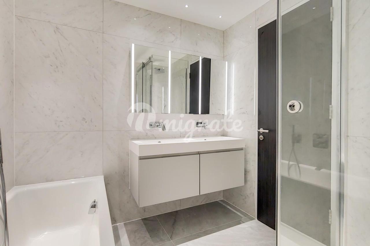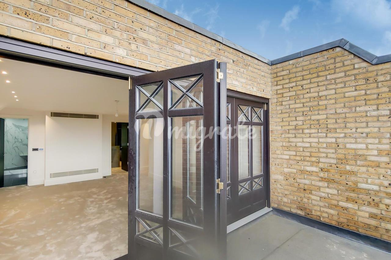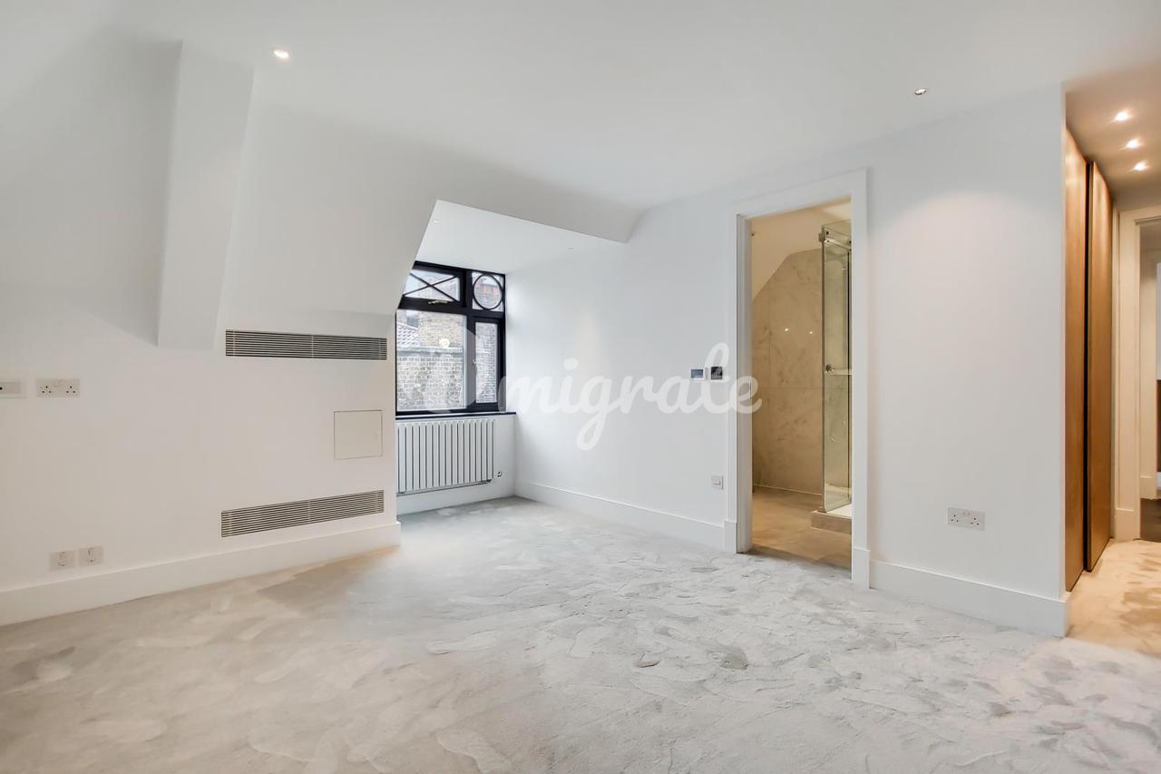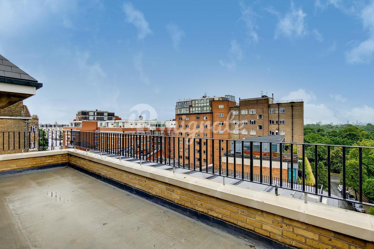 Это впечатляющее семиэтажное здание находится на углу усаженной деревьями жилой улицы в Сент-Джонс-Вуд, одном из самых престижных районов Лондона. На тихих улицах практически нет сквозного движения, и есть много уличных парковочных мест благодаря отсекам для разрешений только для жителей.