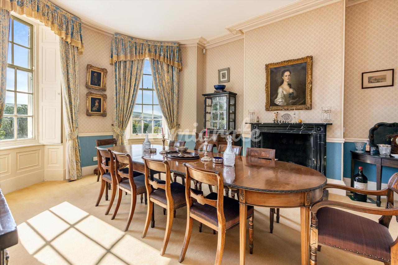 Как это было типично для дома такого размера, три основные приемные расположены на одной линии с центральным залом, и все они выходят на юг с видом на сад и склон холма на дальней стороне долины. Эти комнаты дополняются сочувственно спроектированным одноэтажным бальным залом с внутренней отделкой 18 века и деревянным полом, который был добавлен в 1960-х годах в честь 18-летия сына.