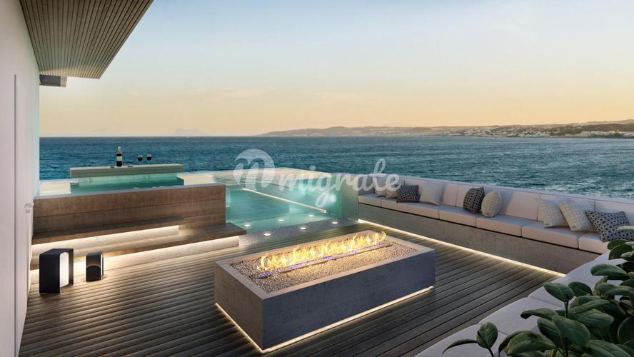 Строящийся двухуровневый пентхаус с тремя спальнями и студией в комплексе из 38 квартир на Новой Золотой Миле в Эстепоне, на первой линии моря с лучшими стандартами качества, с использованием ведущих
