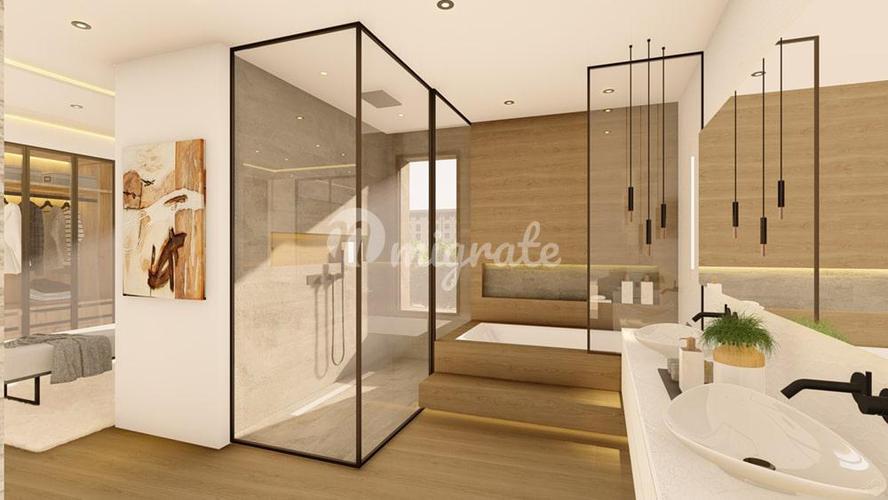 Резиденция состоит из четырех этажей с бассейном и террасой на первом этаже. На первом этаже также есть гараж с парковочным местом на 1 машину. В доме есть потрясающая терраса на крыше, где солнце све