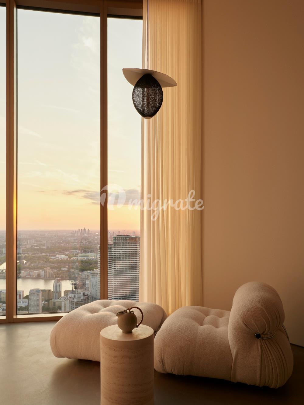 Завершение строительства пентхаусов на One Park Drive является кульминацией работ над необычным новым жилым зданием. Архитектура интерьера, задуманная Херцогом, в сочетании с дизайном интерьера, курируемым Design Research Studio, известной многопрофильной дизайн-студией, возглавляемой Томом Диксоном и Хелен Бангсбо Андерсен, создают поистине уникальное и не имеющее аналогов предложение - в пентхаусах One Park Drive архитектурные амбиции и совершенство дизайна объединились, чтобы создать действительно особенные пространства. для возвышенной жизни. Уровни пентхауса на One Park Drive находятся на 56-м этаже, причем каждая двухуровневая квартира состоит из нижнего и верхнего уровней, а также помещений двойной высоты. Каждый пентхаус уникален, со своей собственной планировкой этажей и конфигурацией комнат, спроектированных таким образом, чтобы максимально подчеркнуть внешний вид и расположение внутри здания. Однако у этих особых помещений есть некоторые общие ключевые характеристики: из окон пентхаусов открывается панорамный вид на Лондон, а их изогнутая форма только подчеркивает и без того замечательную перспективу. В каждой квартире есть несколько террас, а также "карманный" сад во внутреннем дворе. Эти внутренние, отделанные деревом пространства подчеркивают верхний уровень здания, открываясь изнутри наружу, предлагая привилегированный доступ к небу и стихиям.