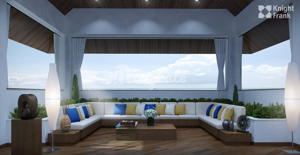 Пентхаус имеет двухуровневую планировку и расположен на 2 верхних этажах здания. Из каждой комнаты пентхауса открывается панорамный вид на просторную террасу на крыше с утопленным бассейном, откуда открывается захватывающий дух вид на курорт Anantara и остров Пальма Джумейра.